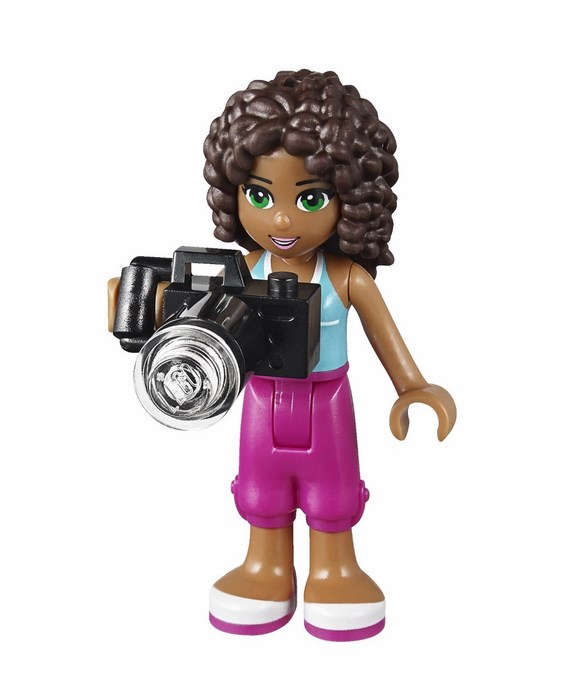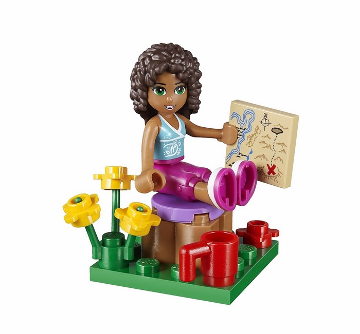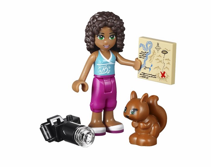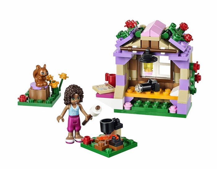 Ciesz się pięknem natury, bawiąc się zestawem Górska chatka Andrei z serii LEGO® Friends, w którym znajdziesz minilaleczkę Andreę, ognisko, pianki do upieczenia, aparat fotograficzny, mapę i wiewiórkę. Górska chatka dysponuje otwieranymi oknami i łóżkiem polowym. Otwórz okna chatki, aby móc cieszyć się widokami, leżąc na łóżku polowym. Rób zdjęcia kwiatów i zwierząt. Podziel się z wiewiórką pieczonymi piankami.