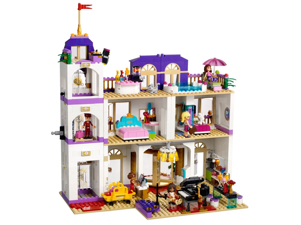 Spędź wyjątkowe wakacje w hotelu Grand w Heartlake! Po wyjściu z taksówki pomóż Andrei, Stephanie i Olivii podać ich bagaże Nate’owi, chłopcu hotelowemu, które czeka na nie z wózkiem. Przez obrotowe drzwi wejdź do luksusowego holu z imponującym żyrandolem. W recepcji odbierz klucze od Susan, cioci Andrei, i pogłaszcz hotelowego kota. Windą wjedź na pierwsze piętro, aby znaleźć swoje pokoje. Wolisz pojedynczy czy podwójny? Obejrzyj widok z balkonu i odśwież się pod prysznicem, a potem wybierz się do umieszczonego na dachu basenu. Wejdź do wody albo poopalaj się na leżaku, popijając napój z pobliskiego barku. Później możesz pójść na kawę z ciastkiem do hotelowej kawiarni albo wybrać się na lody serwowane na tarasie przy fontannie.