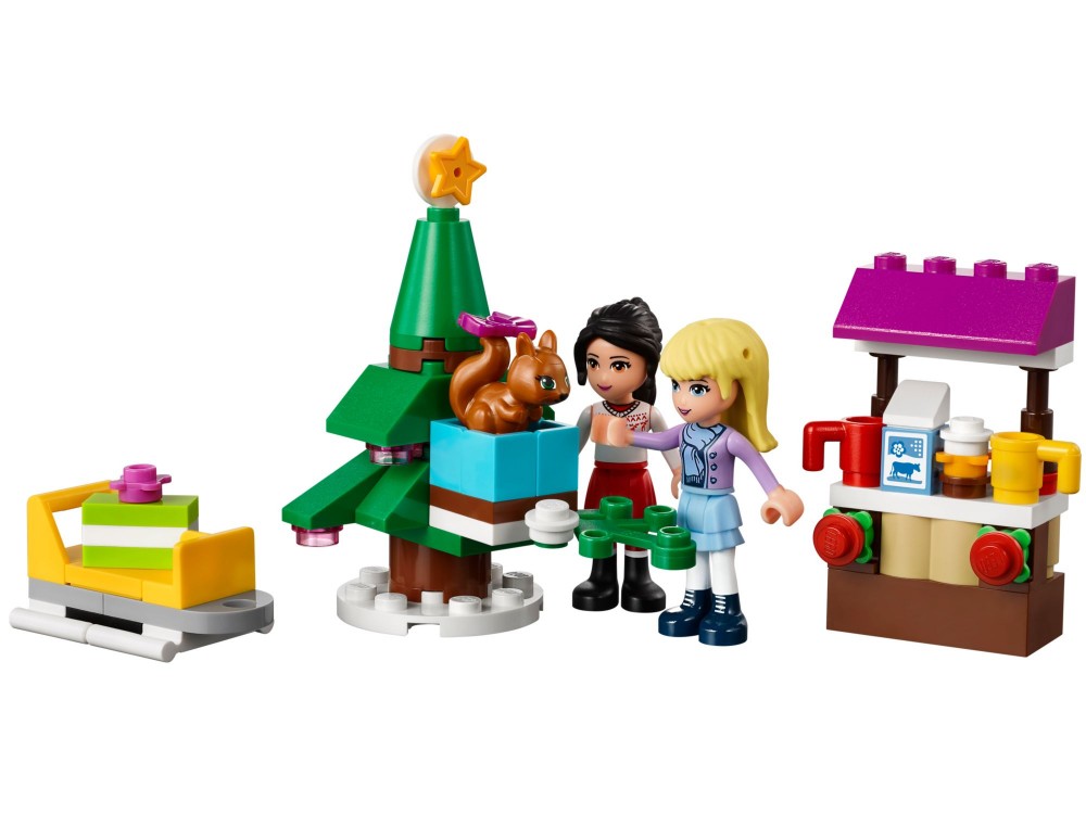W grudniu czas zacząć odliczanie do świąt z LEGO® Friends! Zbuduj ze Stephanie zimową wyprawę na świąteczny targ! Wybierz się śnieżnym śmigaczem na przejażdżkę w świątecznej scenerii, którą znajdziesz w środku. Potem możesz zatrzymać się, zaopatrzyć w prezenty i przekąski i pojeździć na łyżwach! Poszukaj zwierząt, zbuduj dekoracje i pomóż Stephanie przygotować się do najlepszych świąt w Heartlake City! Zestaw zawiera minilaleczki Stephanie i Lily oraz 24 niespodzianki do zbudowania ukryte w 24 tajnych przegródkach kalendarza.