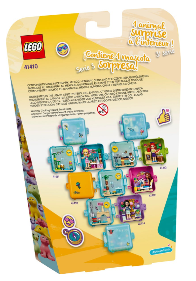- Dzieci mogą bawić się klockami poza kostką lub schować je do środka i zabrać ze sobą w podróż. Kostki można ustawiać w wieże albo łączyć w ciekawe kompozycje z innymi kostkami do zabawy LEGO® Friends. Dzieci mogą je także podzielić i bawić się z przyjaciółmi.