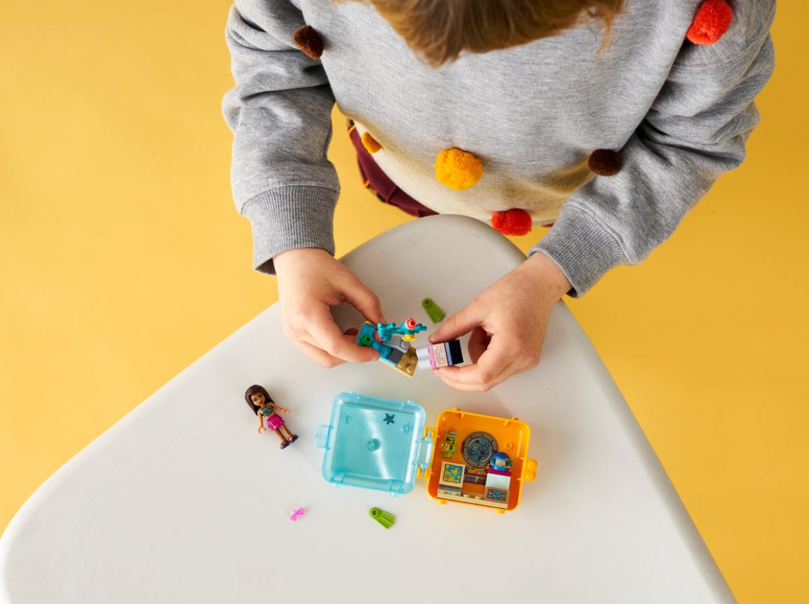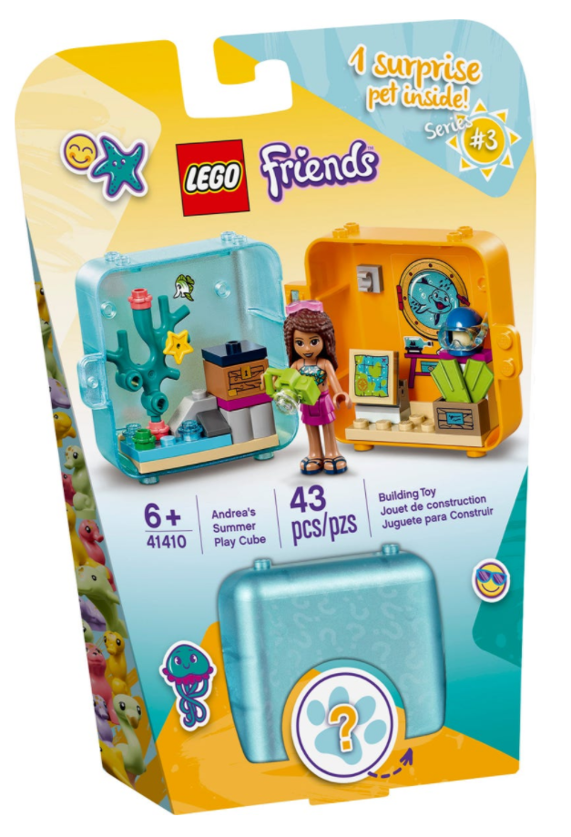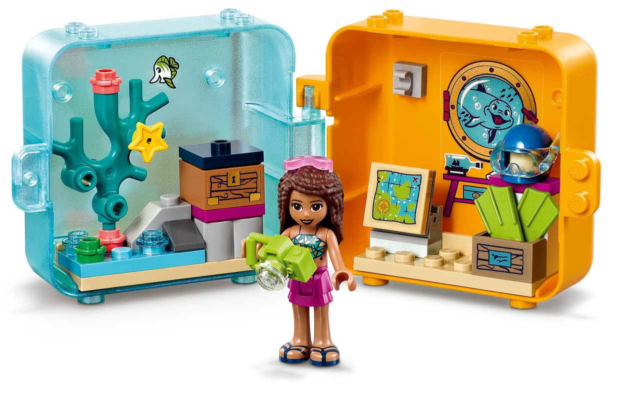 - Przenośna letnia zabawka pozwala zamienić podróż w pasmo ciekawych przygód. Kolekcjonerska Letnia kostka do zabawy Andrei LEGO® Friends (41410) zawiera w sobie wszystkie klocki do zbudowania barwnej morskiej scenki, która dostarczy dzieciom mnóstwa tematów do zbadania.