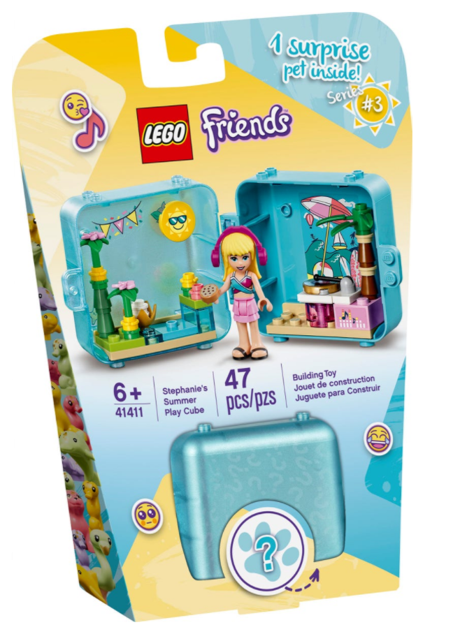 - W Letniej kostce do zabawy Stephanie LEGO® Friends dzieci znajdą minilaleczkę, tajemnicze zwierzę oraz gramofon, który pozwoli rozkręcić imprezę w wyobraźni. Jest tam również arkusz z naklejkami, by dzieci mogły ozdobić swoją kostkę.