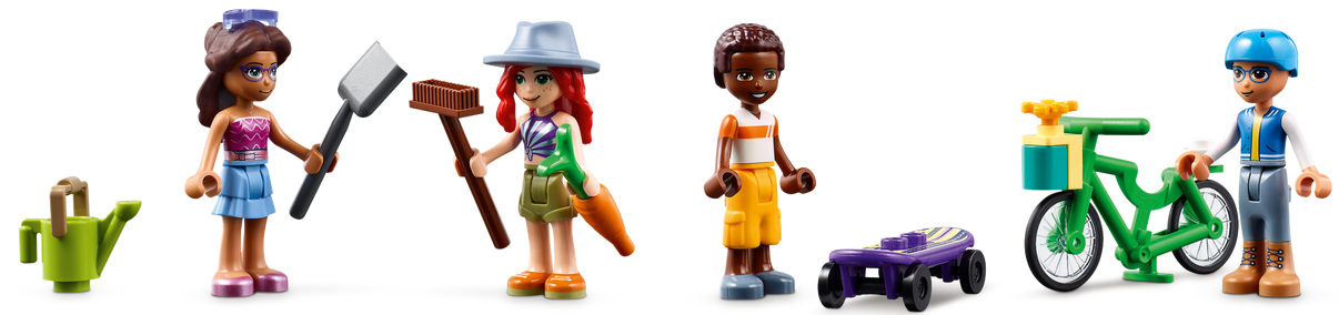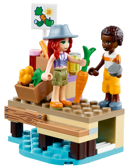 - Sporo ról do odgrywania — w zestawie są cztery minilaleczki LEGO® Friends, w tym Mia, a do tego figurka zwierzaka, rower i osobne stoisko do sprzedawania warzyw, które zachęci do długich godzin pomysłowej zabawy
