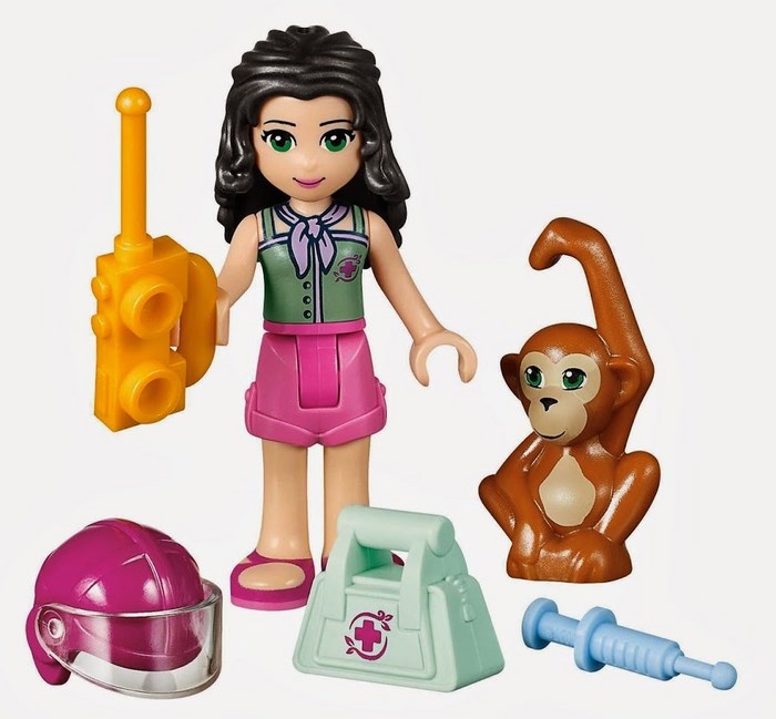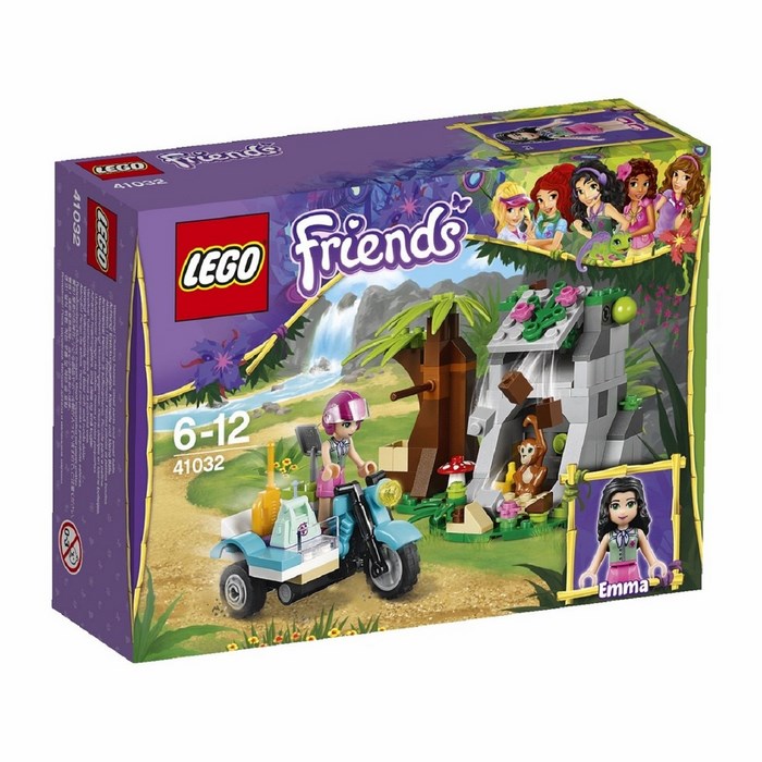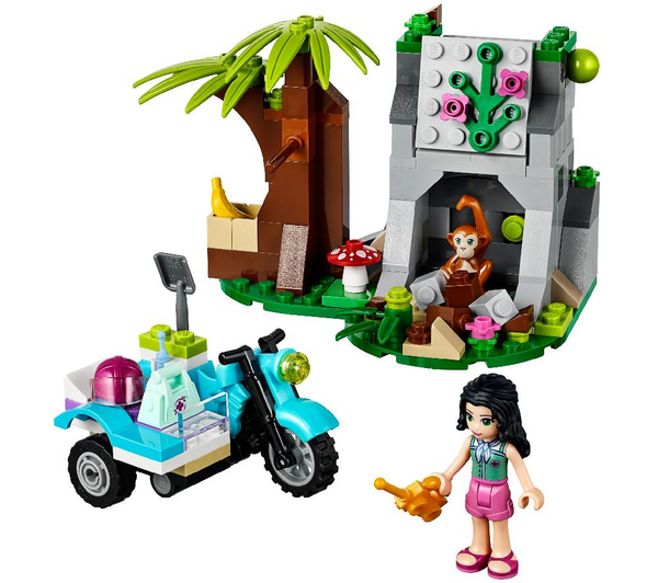 Jaskinia dysponuje przyciskiem powodującym zawalenie oraz tajemną skrytką, w której można chować różne rzeczy. Pomóż wesołej małpce złapać równowagę na gałęzi drzewa. Możesz połączyć ten zestaw z innymi dżunglowymi zestawami z serii LEGO® Friends, aby zorganizować więcej misji ratunkowych.