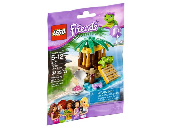 Oaza Żółwia 41019 pozwala zbudować rajską wyspę dla żółwia z przeznaczoną tylko dla niego chatą! Opuść rampę, aby umożliwić mu wejście do środka! Nałóż mu na głowę kokardkę i zabierz na krótką kąpiel w oczku wodnym, gdzie może uda mu się znaleźć muszlę z perłą w środku. Stanie się on najszczęśliwszym żółwiem w Heartlake! Żółwiem możesz opiekować się w internecie na stronie lego.com/friends, a także pobrać z tego adresu więcej pomysłów na przebudowanie modelu.