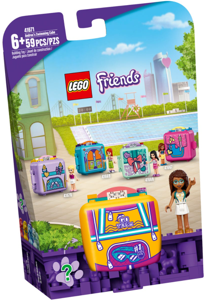 - W kostce dzieci znajdą minilaleczkę LEGO® Friends Andreę, figurkę jej pudla w jednym z czterech możliwych kolorów, miniaturowy basen i krzesło do zbudowania, a także akcesoria, które rozbudzą dziecięcą fantazję.