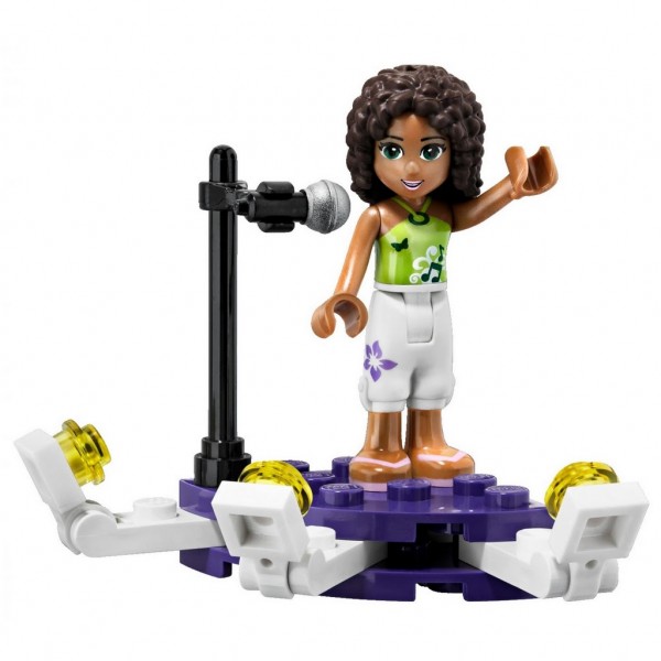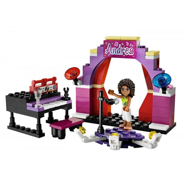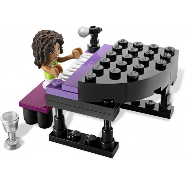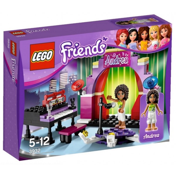 Lego Friends Sala koncertowa Andrei 3932 - Usiądź w pierwszym rzędzie sali koncertowej z serii Lego Friends i pomóż Andrei zostać światową sławą! Jest ona bardzo utalentowaną śpiewaczką, ale wie, że musi jeszcze dużo ćwiczyć jeśli chce zostać sławna. Teraz w swojej prywatnej sali może ćwiczyć dowoli! Światła sceny skupiają się na niej, gdy gra na fortepianie i śpiewa do mikrofonu dla swoich przyjaciółek.