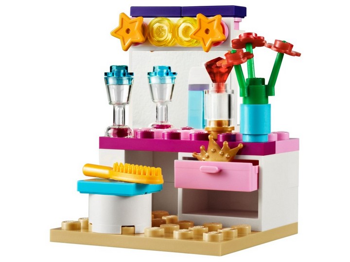 Scena Prób 41004 gwarantuje Stephanie niezbędne wyposażenie do tego by zostać gwiazdą. Pomóż jej trenować przed przedstawieniem baletowym na równoważni. Potem obróć scenę i podkręć głośniki, aby dać koncert rockowy z gitarą i keyboardem. Ćwicz, aż Stephanie osiągnie doskonały poziom, a potem przygotuj ją do występu przy stoliku do makijażu! Poczuj zapach róż dostarczonych przed występem, przygotowując się przy użyciu szczotki i perfum oraz popijając zimną wodę. Kiedy się przygotujesz, wkrocz w światło reflektora i zacznij najlepsze show w Heartlake!