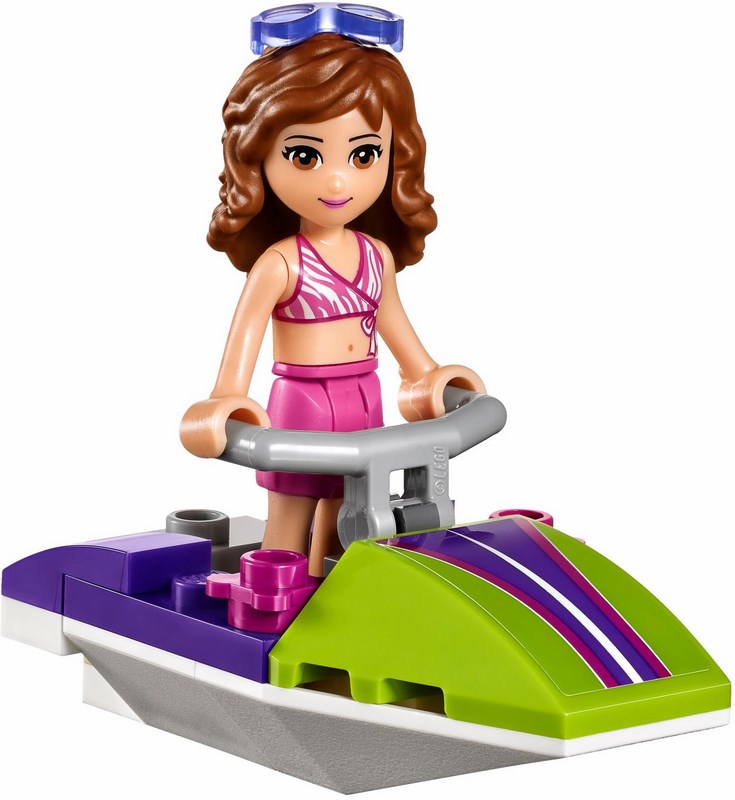 Wybierz się na niezwykły rejs słonecznym katamaranem z serii LEGO® Friends z pokładem do opalania, basenem, mostkiem, zjeżdżalnią, kręconymi schodami, garażem i przesuwanymi drzwiami do części mieszkalnej. Podnieś górną część łodzi, by dostać się do kuchni, sypialni i salonu z przezroczystą podłogą. Wsiądź na skuter wodny, którym możesz holować banana lub nadmuchiwane koło, albo pobaw się z przyjacielskimi delfinami.
