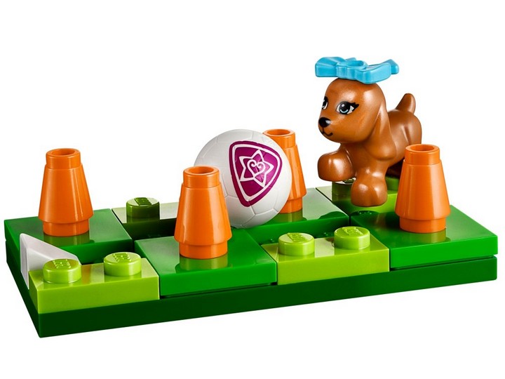 Trening Piłkarski Stephanie 41011 pozwoli ćwiczyć umiejętności przed ważnym meczem piłki nożnej! Drybluj przez ustawiony z pachołków tor przeszkód, a potem ćwicz obronę, korzystając z funkcji strzałów na bramkę! Po treningu możesz zrobić sobie przerwę na ławce i napić się chłodnej wody z dystrybutora i przekąsić banana. Po wyczerpujących ćwiczeniach pobaw się ze Scarlett w aportowanie.