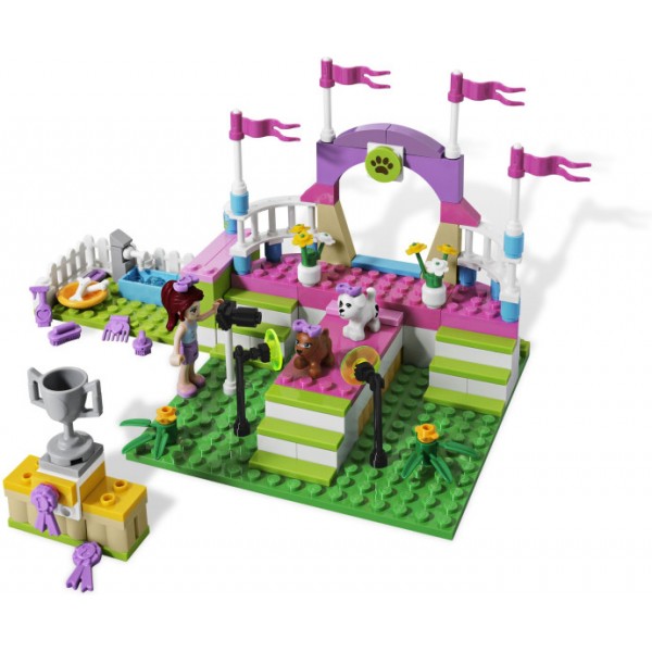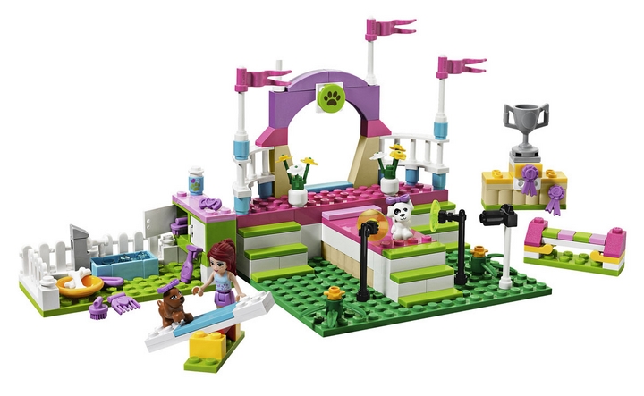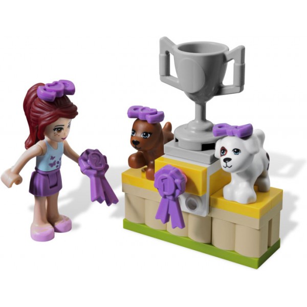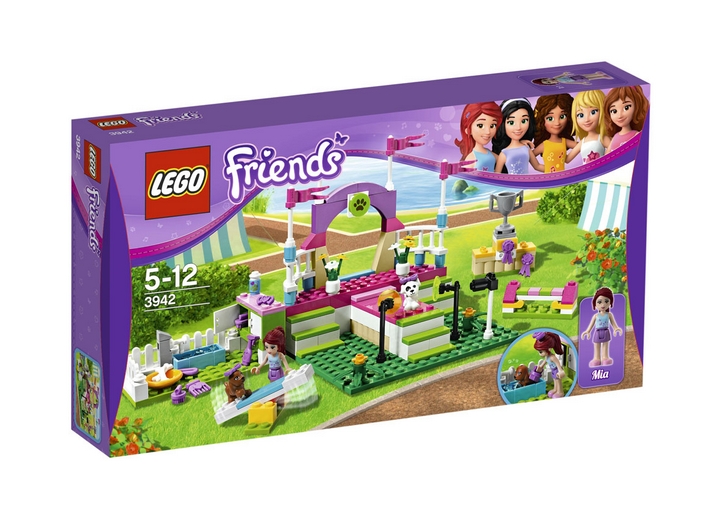 Lego Friends Wystawa psów w Heartlake 3942 - Czas na doroczny konkurs i wystawę psów w Heartlake! Już niedługo zbiorą się sędziowie, przybędzie publiczność, uczestnicy przyprowadzą swoje pieski i zacznie się wystawa psów. Mia chce w tym roku pokazać aż 2 szczeniaczki - ale nie tak łatwo upilnować 2 puchatych rozrabiaków! Pomóż Mii przygotować psiaki do wystawy, przystrój podium i wybieg dla psów i zadbaj o ładną oprawę ceremonii wręczenia nagród. Wystawa zwierząt w Heartlake czeka!
