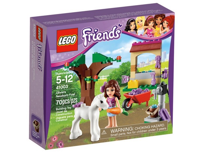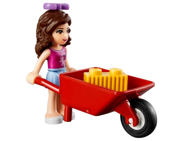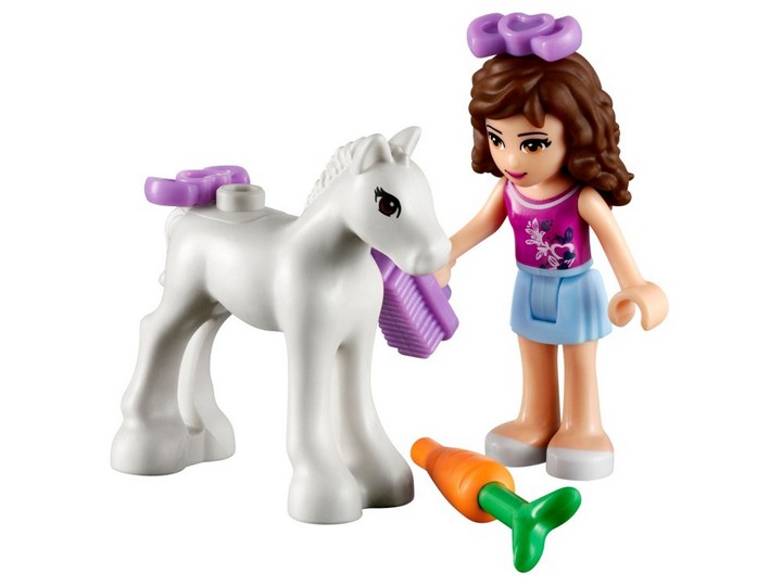 Źrebak Olivii 41003 to nowy nabytek w stadninie Heartlake. Nalej wody do koryta, używając ruchomej pompy, a potem nakarm źrebię marchewką! Potem napełnij taczki sianem i rozrzuć je dla źrebaczka pod drzewem z klocków. Rozczesz jego grzywę szczotką i przystrój ją wstążkami!