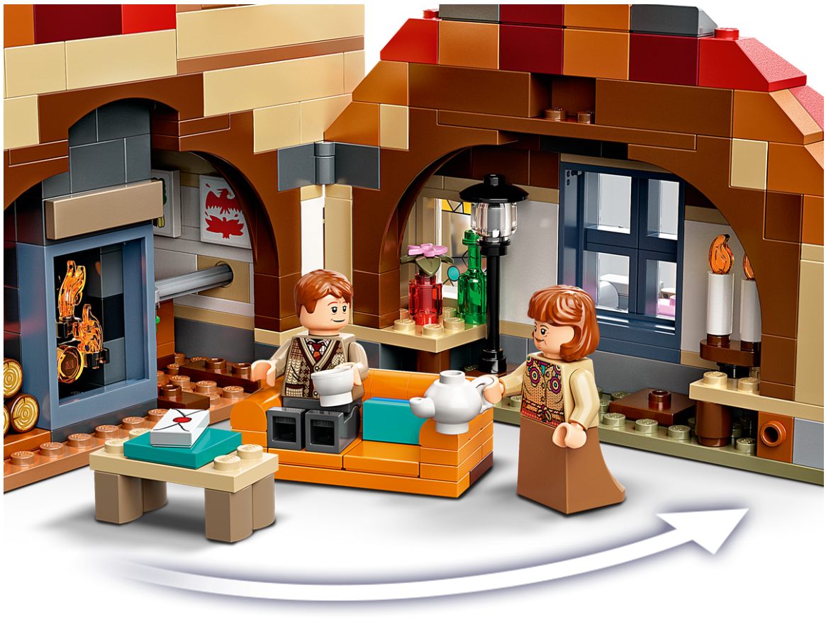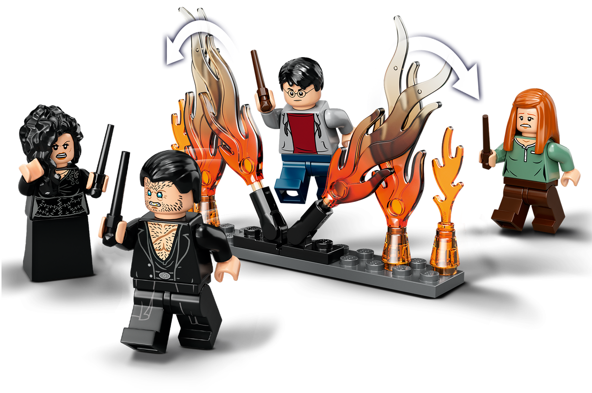 - Zawiera osiem minifigurek LEGO® — Rona, Ginny, Artura i Molly Weasleyów™, Nymphadorę Tonks, Bellatrix Lestrange, Fenrira Greybacka i Harry'ego Pottera™ — a także mnóstwo detali, funkcji i dodatków, w tym specjalne elementy „płomieni” .