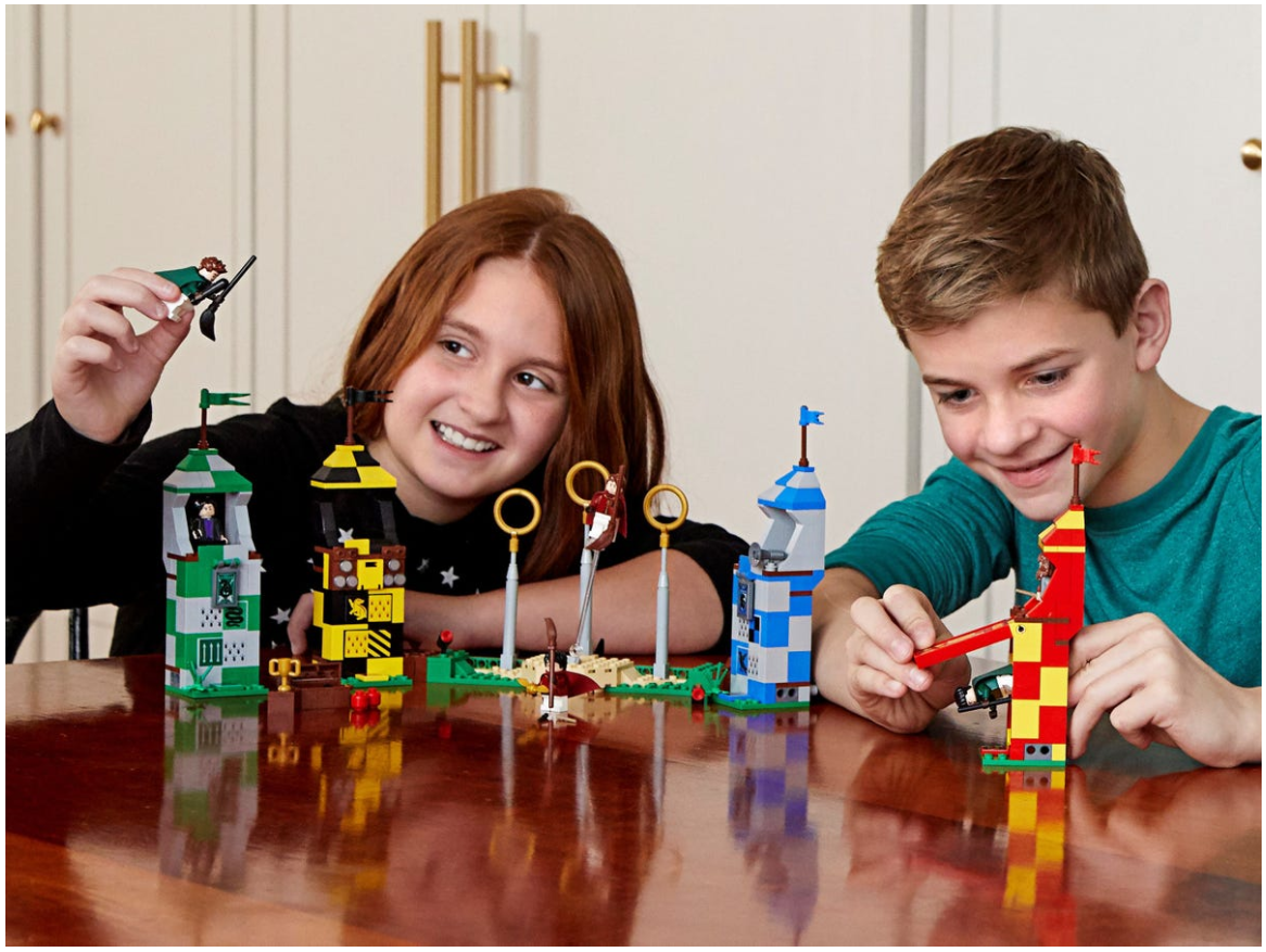 Rozegraj mecz najbardziej emocjonującej gry czarodziejów w zestawie LEGO® Harry Potter™ 75956 Mecz quidditcha™. Dołącz do Harry’ego, Hermiony i profesora Snape’a™ na boisku otoczonym wieżami Gryffindoru™, Slytherinu™, Ravenclawu™ i Hufflepuffu™, na których znajdują się miejsca dla widzów oraz funkcje do zabawy. Podstawka boiska zwiera miotacz klocków przedstawiających tłuczki oraz trzy obręcze na słupkach z pilnującym ich obrońcą, którym można poruszać. Użyj funkcji strzelania zamontowanej na miotle, by przerzucić kafel przez obręcz i odtworzyć słynne mecze quidditcha z hitowych filmów o Harrym Potterze lub wymyśl własne ciekawe wyzwania w tym emocjonującym zestawie z serii LEGO Harry Potter.