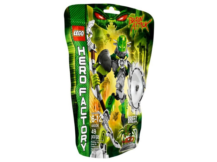 Breez 44006 zgłoś się — zamelduj się natychmiast w sali odpraw Lego Hero Factory! Obce mózgi krążą po galaktyce jak wirus! Trzeba je powstrzymać! Użyj wyjątkowego sprzętu Lego Hero Factory: wirującej piły tarczowej, kija bo, pancernego wizjera i superbezpiecznych zatrzasków blokujących rdzeń bohatera. Bierz broń i walcz z tymi odmóżdżaczami!