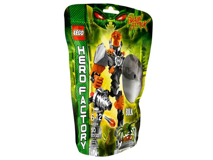 Bulk 44004 pilnie wzywany do sali odpraw Hero Factory! Obce mózgi usiłują opanować galaktykę! Potrzebujemy silnej linii obronnej, aby odeprzeć atak! Otrzymujesz uzbrojenie Hero Factory: hartowną tarczę, pancerny wizjer i zatrzaski blokujące rdzeń bohatera. Twoje wiertło laserowe jest idealne, by przebić kamienny pancerz Bruizera (zestaw 44005). W tej walce wszystko może się zdarzyć!