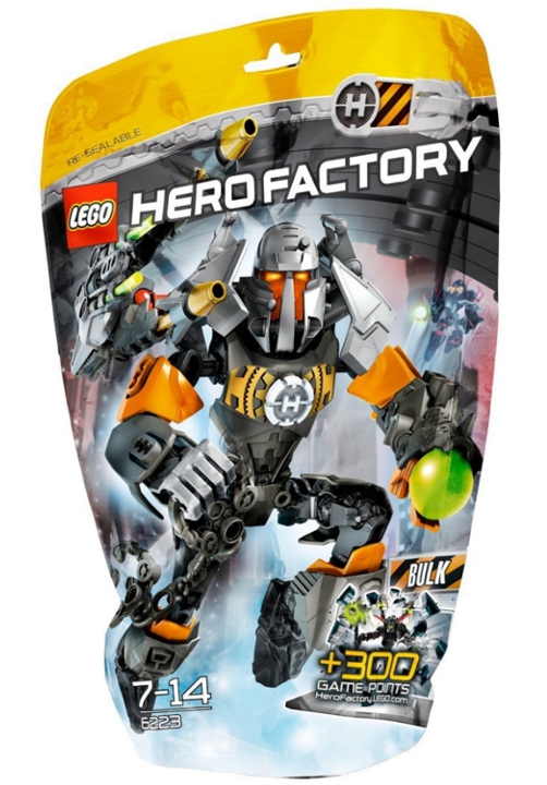 Lego Hero Factory BULK 6223 jest agentem specjalnym, który został wysłany by wyłapać uciekinierów galaktycznego więzienia. Do tej misji wyposażony jest w ciężkie działo oraz solidny pancerz. Pomóż agentom ukończyć misję! Seria Lego Hero Factory skupia się na rozbudowanych figurkach robotów. Hero Factory to fabryka super bohaterów, którzy zostali stworzeni żeby przeciwstawić się robotom złoczyńcom.