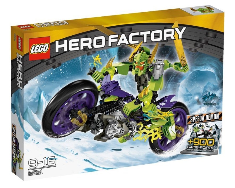 Lego Hero Factory SPEEDA DEMON 6231 to jeden z najbardziej nieuchwytny przestępca w historii galaktyki. Speed Demon w pełni zasługuje na swoje miano. Jakby tego było mało po ucieczce z więzienia zdobył dla siebie ultraszybki pojazd. Wypasiony motor sprawia, że Speed Demon jest szybki jak błyskawica. Zatrzymaj go zanim będzie zbyt daleko! Seria Lego Hero Factory skupia się na rozbudowanych figurkach robotów. Hero Factory to fabryka super bohaterów, którzy zostali stworzeni żeby przeciwstawić się robotom złoczyńcom.