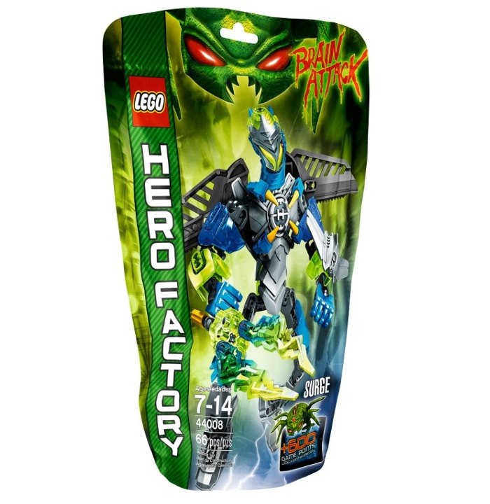 Uwaga SURGE: Nikczemne mózgi zbliżają się do kwatery głównej LEGO® Hero Factory! Trzeba je powstrzymać! Masz na wyposażeniu potężne, obrotowe ostrza z błyskawic, dwa miotacze plazmy, skrzydła odrzutowe, otwierany, pancerny wizjer i zatrzaski blokujące rdzeń bohatera. Zakręć ostrzami i zafunduj obcym niezapomniany wstrząs!