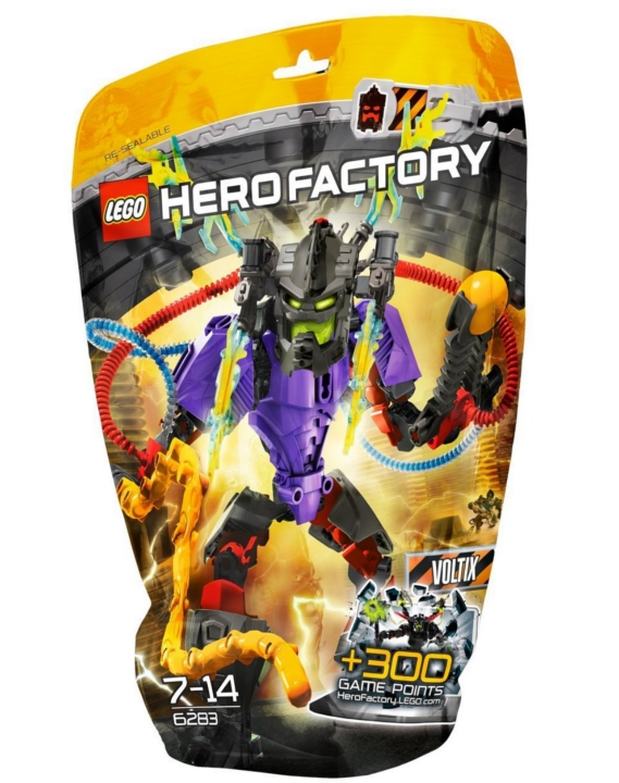Lego Hero Factory VOLTIX 6283 jest jednym z najgroźniejszych przestępców z galaktyki. Po ucieczce z więzienia Voltix pozostaje nieuchwytny dla ścigających go agentów specjalnych. By go pojmać należy być bardzo ostrożnym bo pomimo niepozornego wyglądu Voltix jest bardzo groźnym przeciwnikiem! Seria Lego Hero Factory skupia się na rozbudowanych figurkach robotów. Hero Factory to fabryka super bohaterów, którzy zostali stworzeni żeby przeciwstawić się robotom złoczyńcom.
