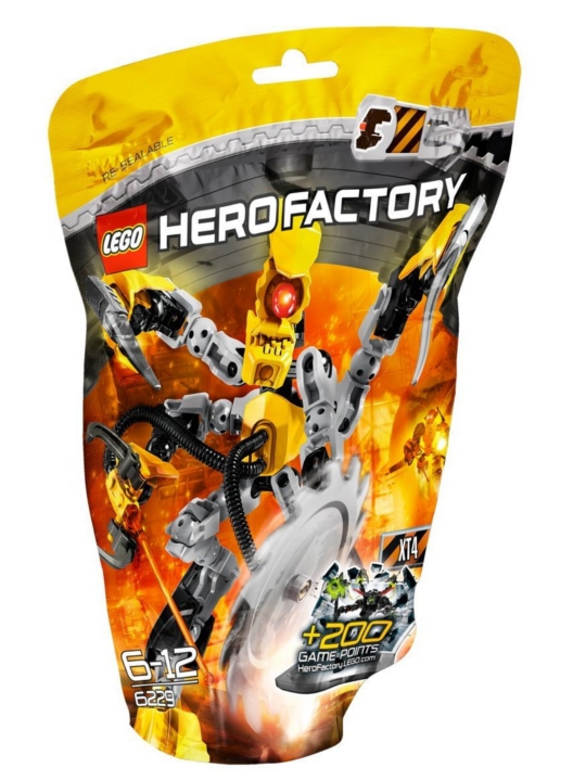 Lego Hero Factory XT4 6229 jest bardzo groźnym przestępcą, który niedawno uciekł z galaktycznego więzienia. To śmiertelnie niebezpieczny przeciwnik tym bardziej, że uzbrojony jest w ostre kolce. Jako broń nosi zawsze przy sobie piłę mechaniczną oraz laser. Seria Lego Hero Factory skupia się na rozbudowanych figurkach robotów. Hero Factory to fabryka super bohaterów, którzy zostali stworzeni żeby przeciwstawić się robotom złoczyńcom.