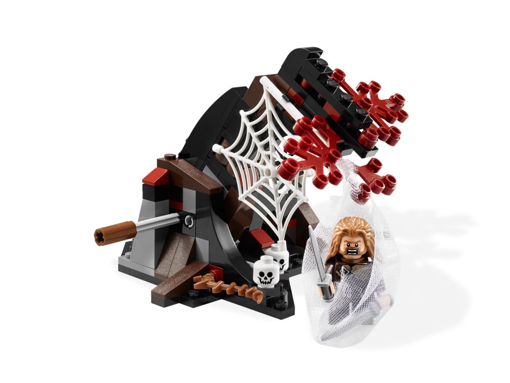 Przemierzaj ciemną i przerażającą Mroczną Puszczę™ z krasnoludami Filim i Kilim, podróżującymi do Samotnej Góry. Atakuj bohaterów z pomocą 3 małych i 2 wielkich pająków z oczami świecącymi w ciemności. Uwięź krasnoludy w składanych kokonach wysoko na drzewie do zbudowania. Użyj funkcji przechylenia, by uratować krasnoludy z pomocą Legolasa Zielonego Liścia™ i Tauriel™ — pokonaj pająki, zanim będzie za późno!