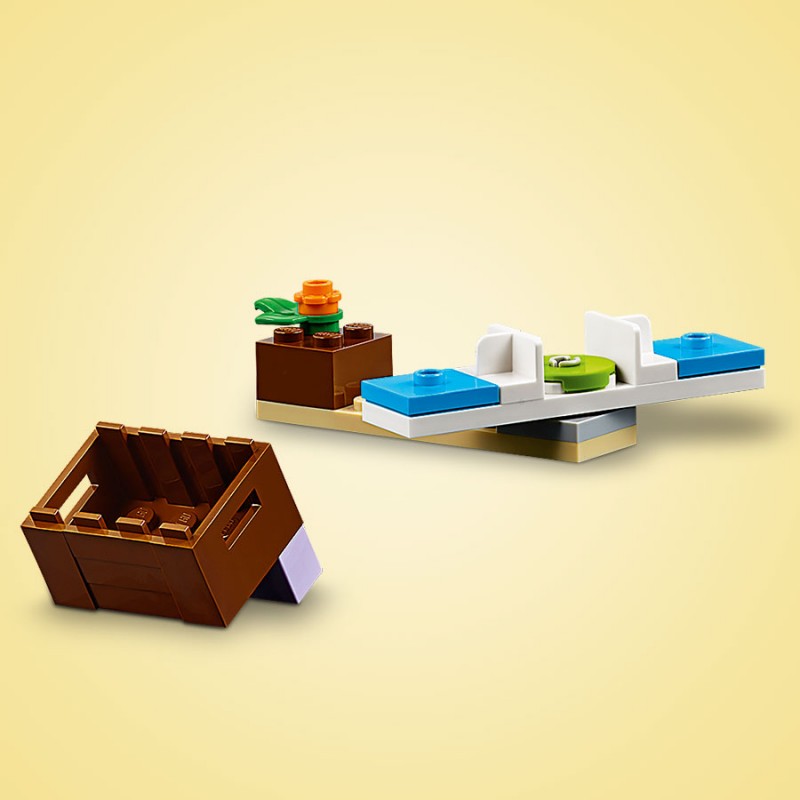 - Zawiera też skrzynkę, małe stoisko, karuzelę do złożenia i stół piknikowy z siedzeniami.