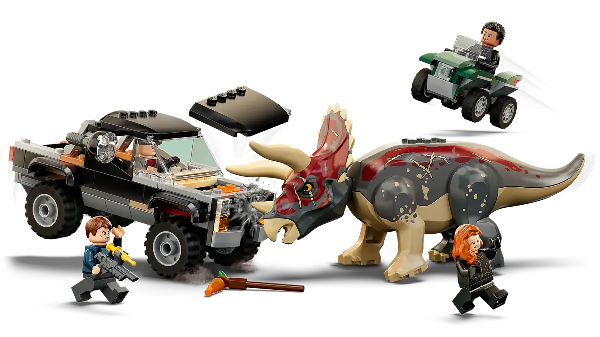 zestaw Triceratops i zasadzka z pick-upem (76950) to źródło zabawy,