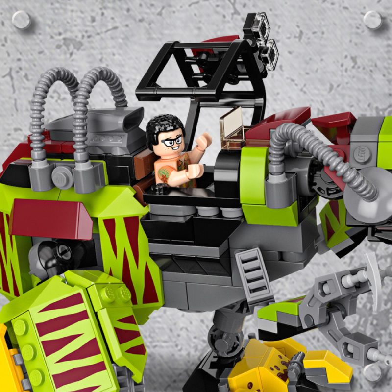 - Mechaniczny dinozaur ma otwierany kokpit dla minifigurki ze szczegółowym panelem sterowania, kłapiące szczęki oraz ruchomą głowę, kończyny, pazury i ogon.