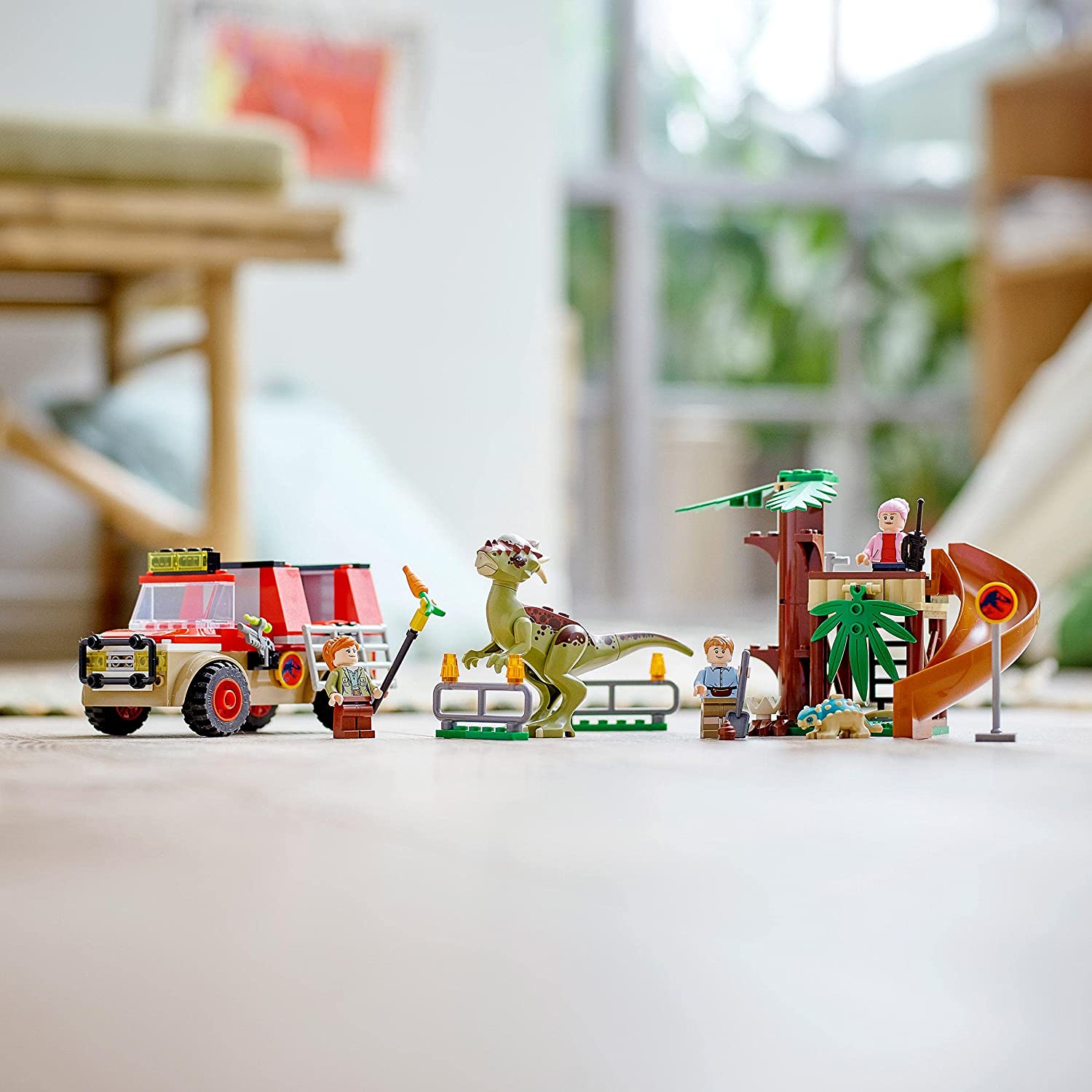 Zestaw Ucieczka stygimolocha (76939) pozwoli maluchom poćwiczyć budowanie i odegrać ekscytujące historie. W zestawie inspirowanym serialem animowanym „Park Jurajski: Obóz kredowy” czeka mnóstwo atrakcji: stygimoloch i mały ankylozaur Bumpy, pojazd terenowy z odłączaną klatką dla dinozaura, a także domek na drzewie z wieloma detalami i zjeżdżalnią dla Bumpy’ego. Są tam też trzy minifigurki i wiele akcesoriów, więc pomysłów na zabawę z pewnością nie zabraknie.
