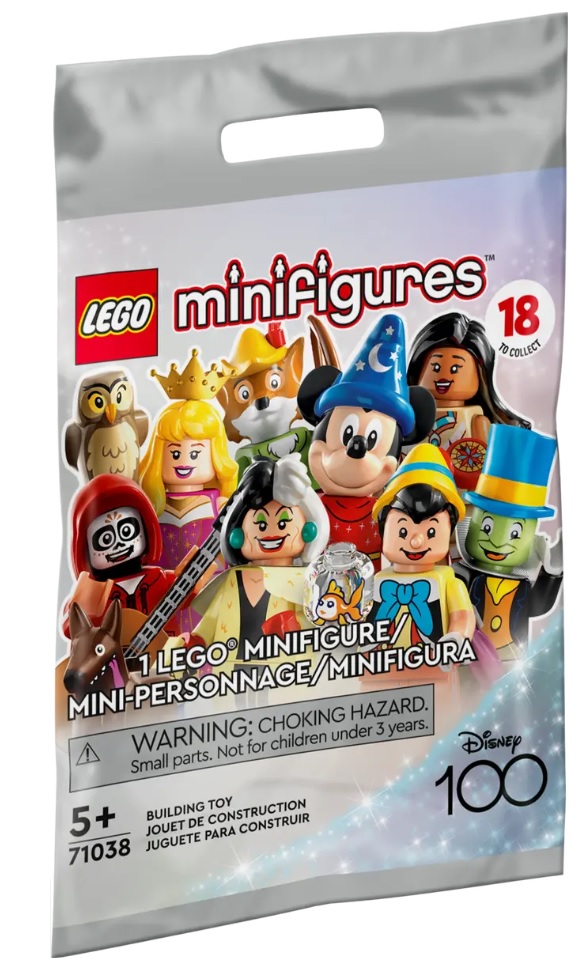 18 minifigurek LEGO Disneya w zapieczętowanej tajemniczej torebce, a w każdej także co najmniej jedno akcesorium i ulotka kolekcjonerska. To idealna gratka, która pobudzi wyobraźnię dzieci i zapewni im świetną zabawę.