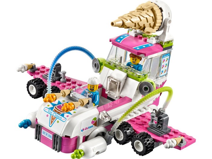 Czerwony alarm! Mikro Szef strzela potrójnymi rakietami w przypadkowego biegacza. Popisz się kreatywnością i przebuduj ruchomą lodziarnię w naddźwiękową, latającą maszynę do lodów. Wskakuj do kokpitu, poszybuj w przestworza, wyceluj w robota z ogromnego, ruchomego rożka na dachu i ostrzelaj go rakietami ze skrzydeł. Nie ma czasu do stracenia! Przerób maszynę w ruchomą lodziarnię z głośnikami, ogromnym rożkiem lodowym na dachu, tablicą smaków i odczepianym dachem, pod którym znajdziesz maszynkę do lodów i zamrażarkę. Strzelaj rakietami zamontowanymi na skrzydłach. Odpal potrójne rakiety Mikro Szefa. Dwa świetne modele w jednym. Obejrzyj film ,,Przygoda LEGO®", aby zobaczyć ulubione postacie w akcji