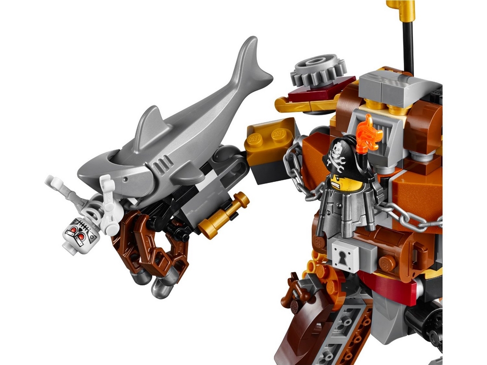 Uwaga, wilki morskie! Stalowobrody stracił części ciała w poprzednim starciu z Lordem Biznesem, ale odbudował się ze złomu ze starych statków i stał się jeszcze potężniejszy. Teraz rzuca mu wyzwanie wielki Mikro Szef. Dobądź pirackiego miecza z pochwy na plecach i strzelaj z armaty na lewej ręce. Chroń cenną papugę i skrzynię skarbów częściami ciała Stalowobrodego, ale pospiesz się, żeby zdążyć, nim Mikro Szef wystrzeli rakiety i schwyta brygadzistę w swoje szpony.