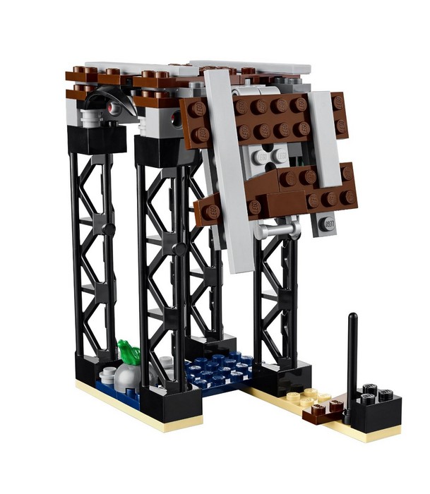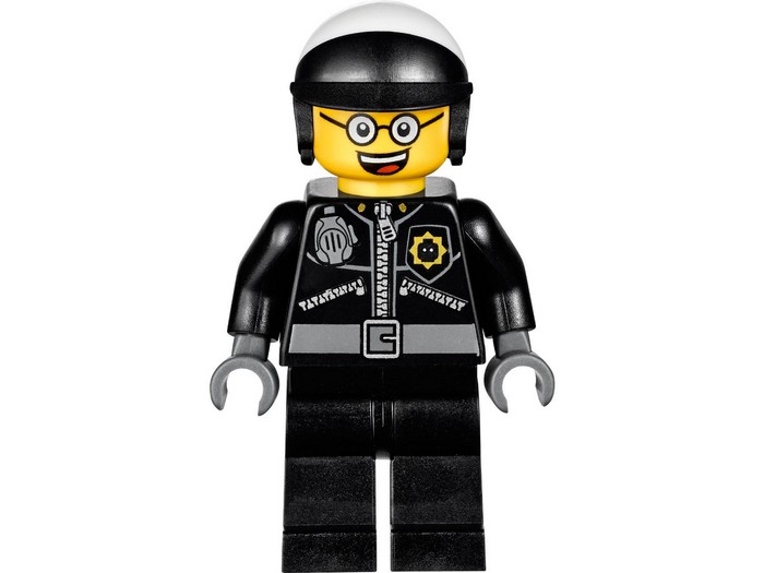 Akcja nie ustaje — Zły Glina ściga Emmeta wzdłuż toru kolejowego w swoim latającym radiowozie. Wysuń lasery spod maski radiowozu i strzelaj z laserowych dział ukrytych pod drzwiczkami. Uważaj na walący się most! Kłopoty czyhają ze wszystkich stron, gdy Zły Glina strzela z nowego blastera, a w dole czają się ruchome robo-krokodyle z kłapiącymi szczękami i policyjnymi sygnałami na grzbietach. A gdy będzie się zdawać, że wszystko stracone, obróć głowę Złego Gliny, by stał się Dobrym Gliną! Zamocuj cenny element oporu na plecach Emmeta. Strzelaj z nowego, ultrafajnego lasera. Zawal most kolejowy, pociągając za uchwyt, i pomóż Emmetowi chwycić się krawędzi.