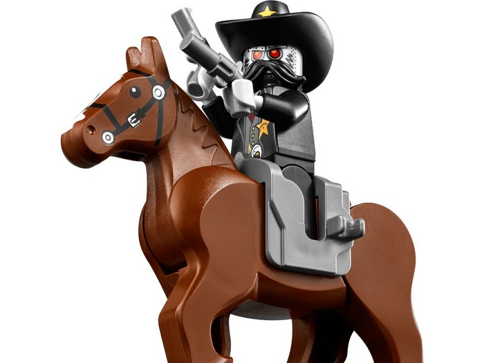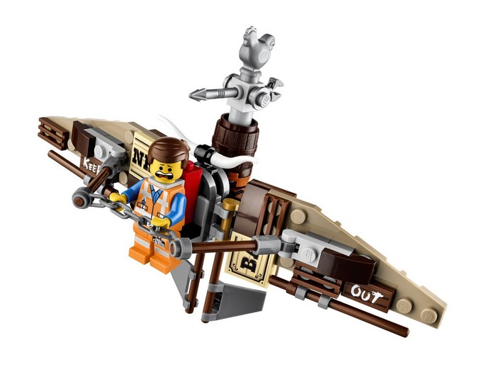 Juhuu! Na Starym Dzikim Zachodzie szykują się kłopoty. Popisz się kreatywnością — pomóż Emmetowi zbudować szybowiec i uciec nim przed robotami z elementem oporu. Uważaj! Są uzbrojeni, a koń robota-szeryfa może się wznieść na tylne nogi. Ustaw tylne skrzydła i rogi, machając skrzydłami poszybuj w bezpieczne miejsce i kieruj się wiatrowskazem, by trafić gdzie trzeba. Szybowiec ma ruchome skrzydła, tylne skrzydła, wiatrowskaz i krowie rogi. Zamontuj Emmetowi na plecach cenny element oporu. Wskocz na fajnego, ruchomego konia. Obejrzyj LEGO® Film, aby zobaczyć ulubione postacie w akcji.
