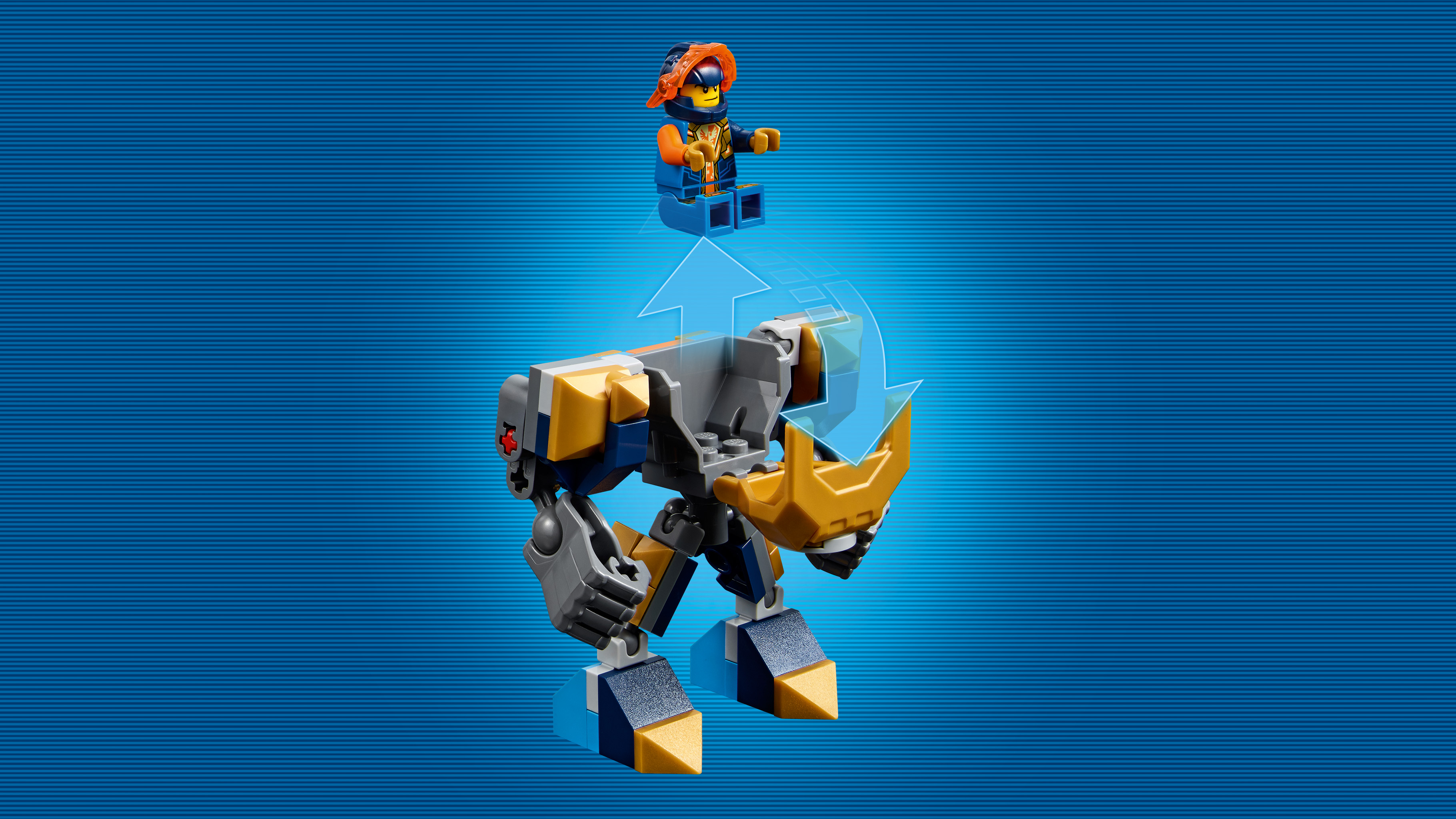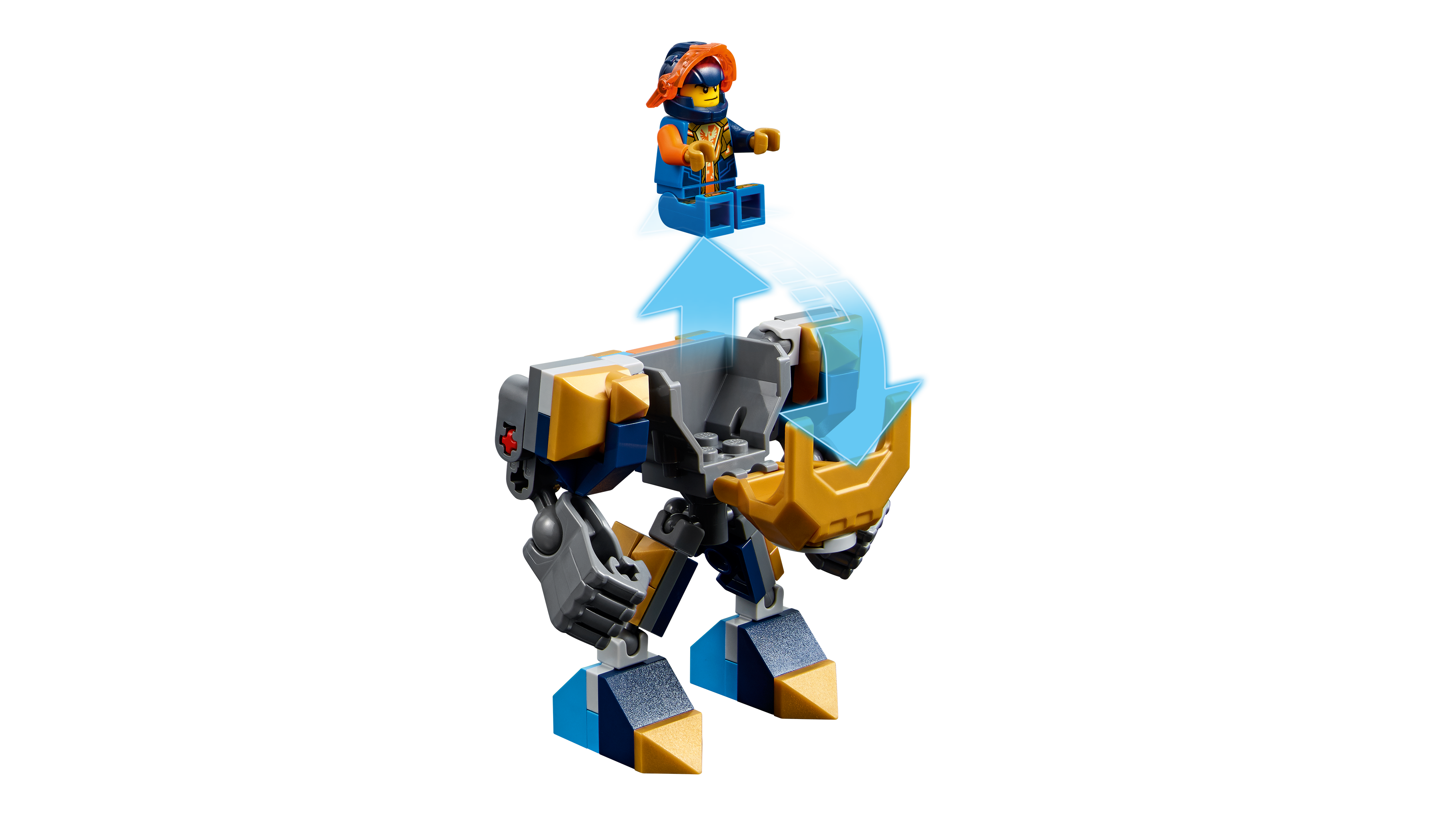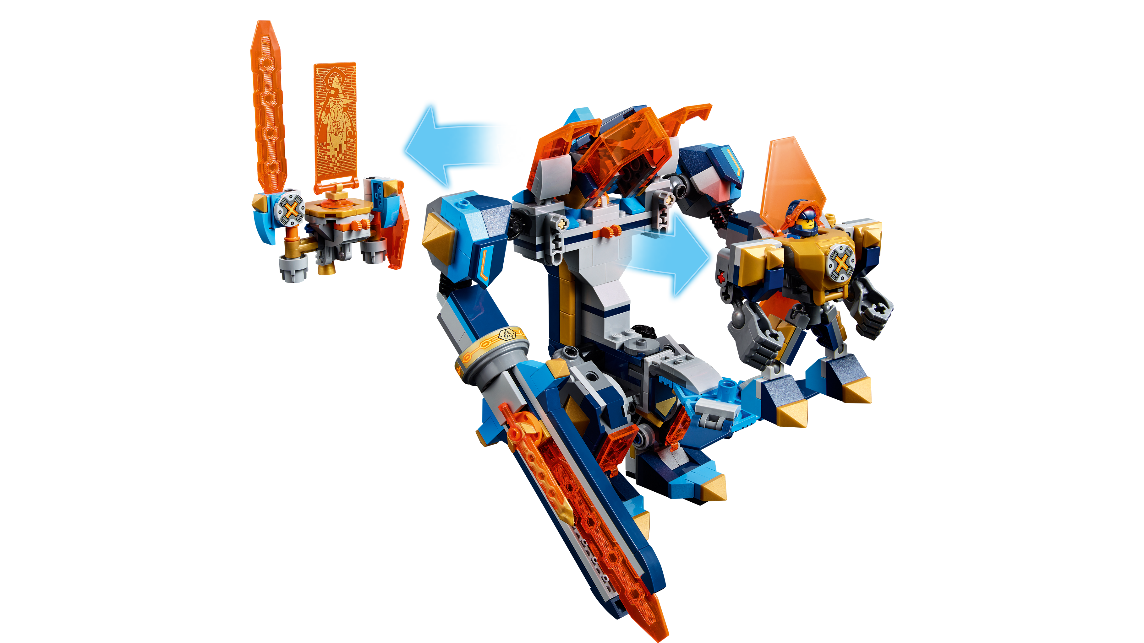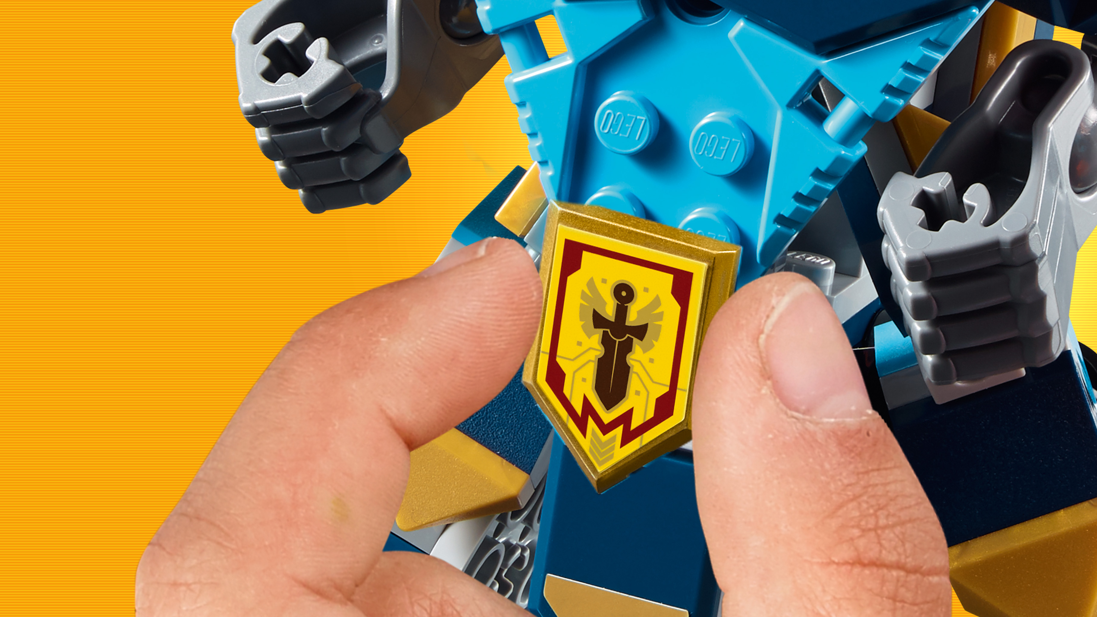 - Mech Claya ma kokpit na minifigurkę, miecz, tarczę z szybkostrzelnym działkiem na sześć klocków, tarczę mocy Combo NEXO oraz odczepianą figurkę hologramu Merloka 2.0 przymocowaną do lotni z mieczem i uchwytem na tarczę.