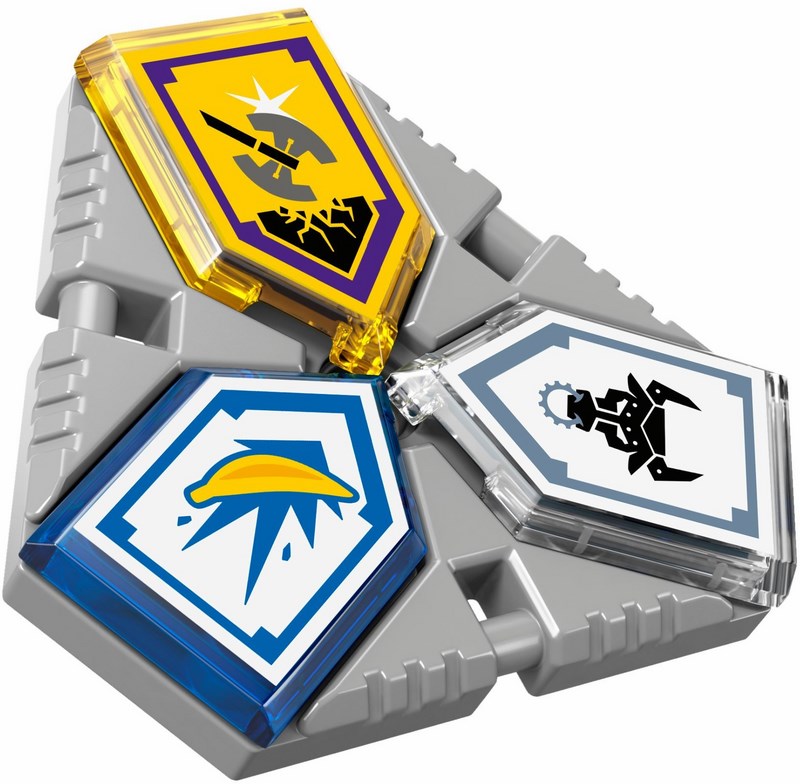 Do wyboru masz pięć mocy NEXO: Tytanowy Miecz, Mechaniczny Gryf, Rozkazujący Okrzyk, Płomieniste Zniszczenie i Moc kurczaka. Rycerze z serii NEXO KNIGHTS mogą samodzielnie kontrolować kombinowane moce NEXO tylko wtedy, gdy mają na sobie zbroje!