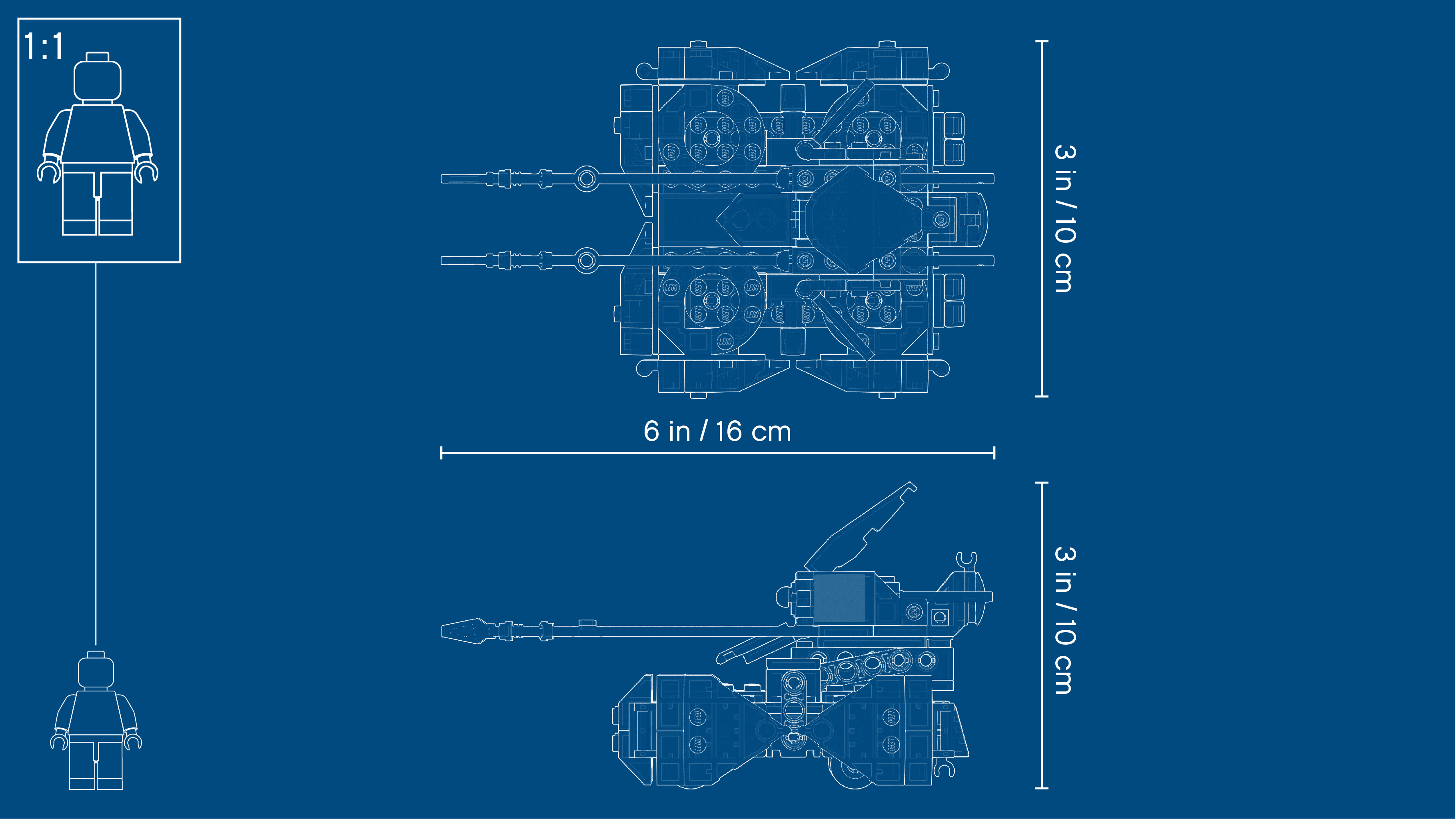 - Bojowy poduszkowiec Lance’a ma ok. 10 cm wysokości, 16 cm długości i 10 cm szerokości albo 22 cm długości w trybie pojedynkowym.