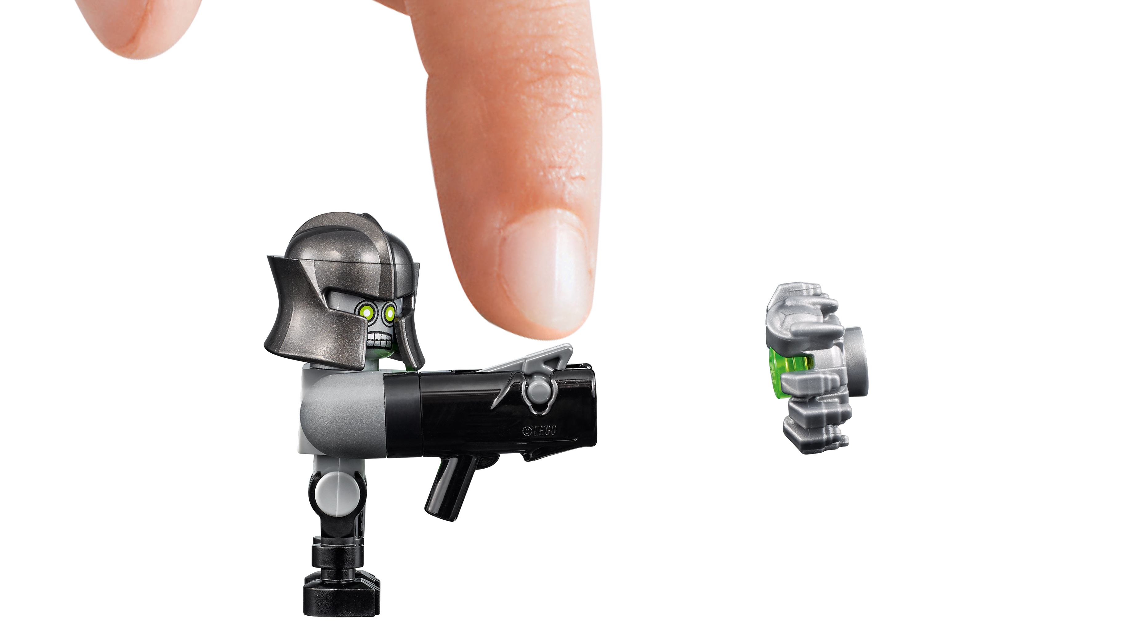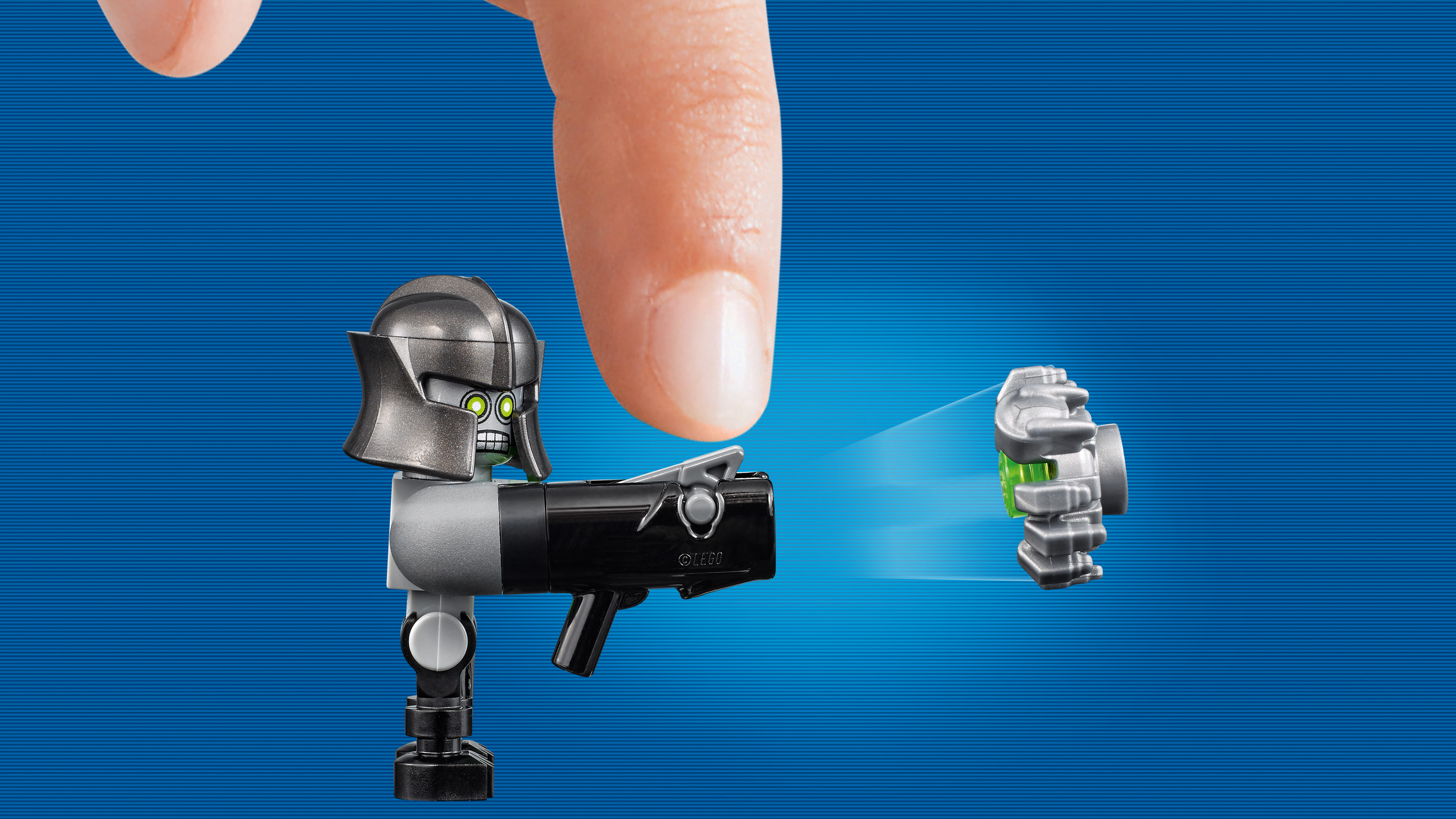 - Umieść moc Merloka w uchwycie, by ulepszyć swojego rycerza lub pojazd w czasie walki ze złoczyńcami!