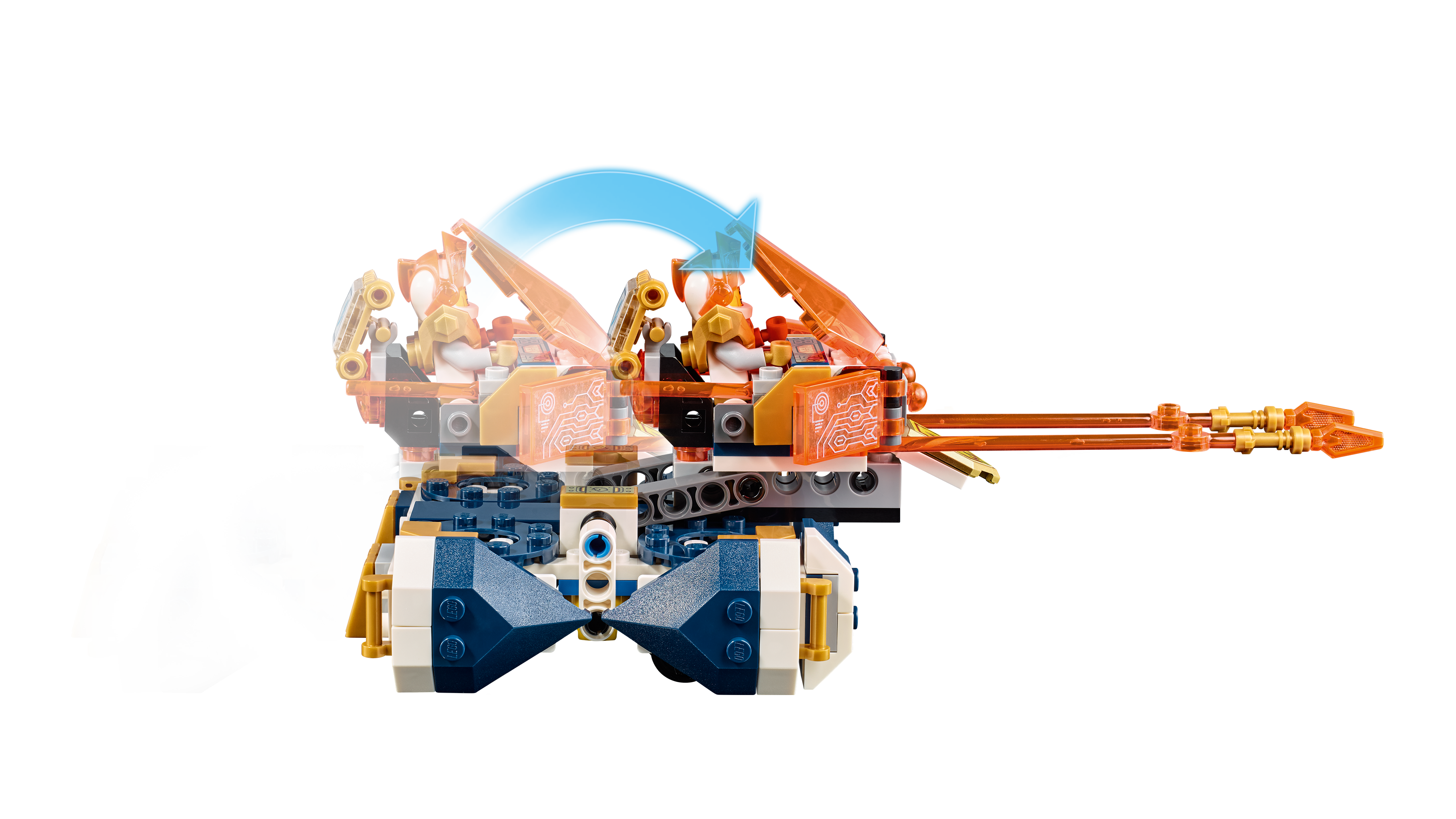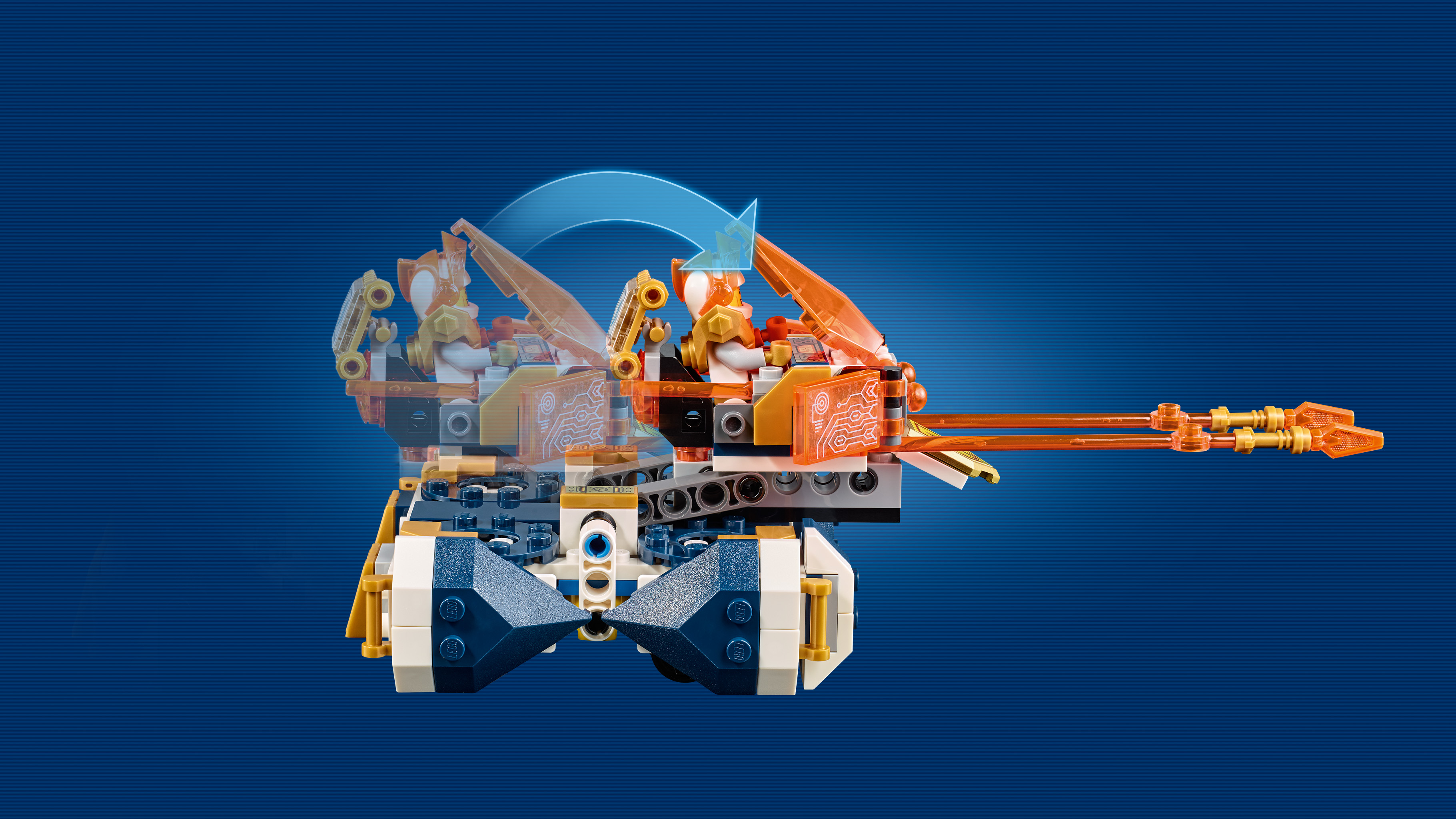 - Bojowy poduszkowiec Lance’a ma ruchomy kokpit z miejscem na minifigurkę i dwiema lancami, dwa wystrzeliwane pociski, dwie ruchome osłony, uchwyt na tarczę, uchwyt z tyłu na broń oraz cztery obracające się koła.