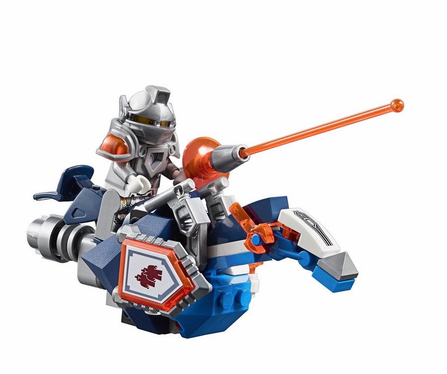 Lance Richmond ma do wygrania wielką bitwę! Wskakuj na grzbiet odrzutowego wierzchowca, by pokonać wielkiego Sparkksa! Odszukaj Jestro, który ukrywa się w swym Złomobilu. Uważaj, żeby nie wpaść w pułapkę, bo wylądujesz w więzieniu! Spróbuj zwędzić Jestro sprzed nosa księgę potworów. Jeśli ci się uda, nie będzie mógł stworzyć swojej straszliwej armii! W zestawie 3 skanowalne tarcze mocy NEXO: Klonowanie, Potęga i Morski smok.