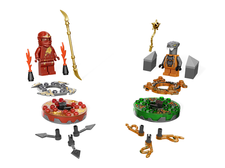 Lego Ninjago 9591 Zestaw Bitewny Kai vs Chokun to zestaw, który umożliwi rywalizację pomiędzy dwoma dzielnymi wojownikami. Gracze konfrontują swoje umiejętności, walcząc wirującymi figurkami na blacie stołu i przenosząc w ten sposób dynamiczną fabułę Ninjago do realnego świata. Sprawdź kto okaże się silniejszy Kai czy Chokun? Bitwę Spinjitzu czas zacząć!