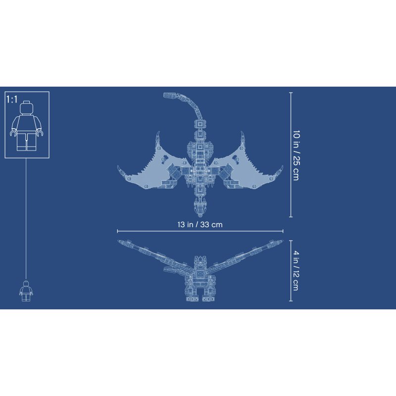 - Ten zestaw NINJAGO® ze smokiem to nowość na czerwiec 2020 r. Jest na tyle mały, że dzieci mogą zabierać go wszędzie ze sobą. Latający smok ma ok. 12 cm wysokości, 24 cm długości i 33 cm szerokości.