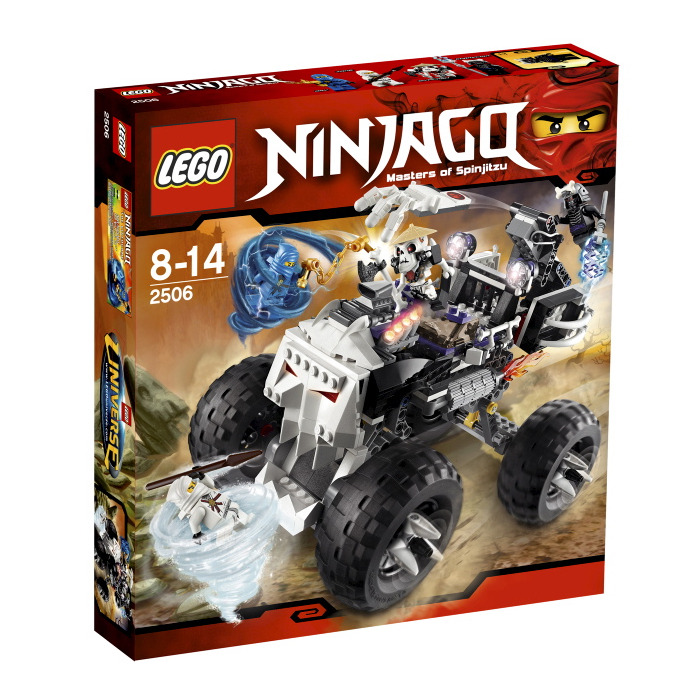 Lego Ninjago Czaszkowóz 2506 to kościsty pojazd którym uciekają Lord Garmadon i Wyplash po kradzieży nunczaka błyskawic. Jay i Zane próbują ich powstrzymać, ale czy zdołają uniknąć potężnej kościstej pięści i mocnych szczęk? Użyj umiejętności Spinjitzu i odzyskaj nunczako błyskawic!