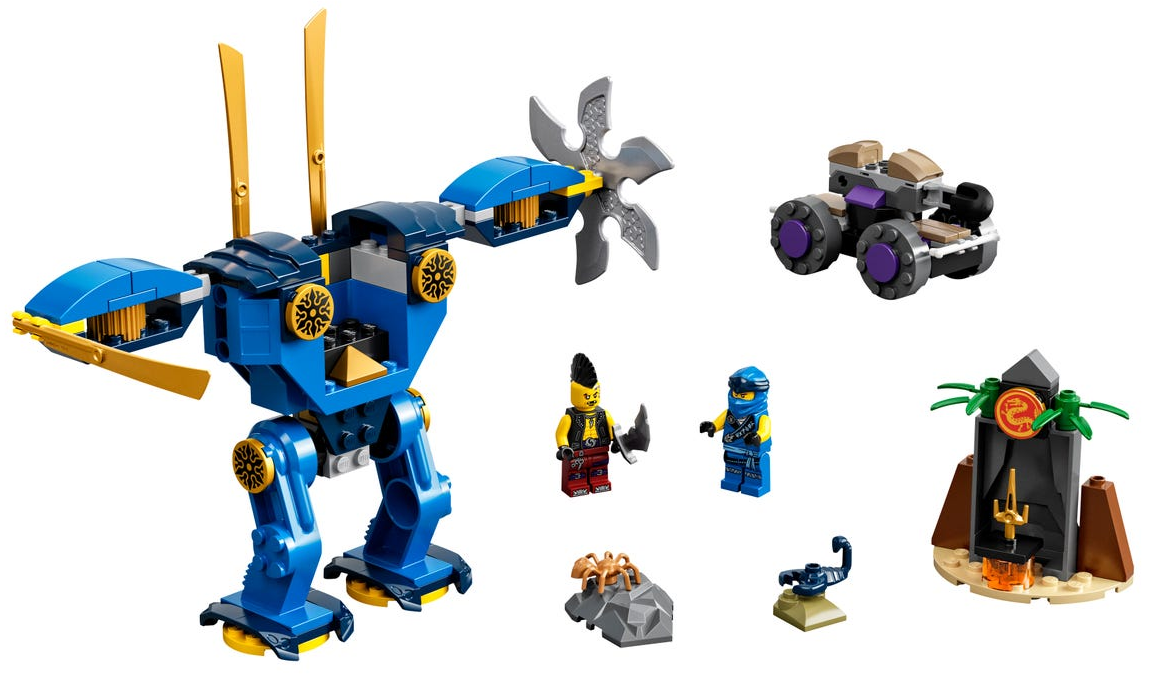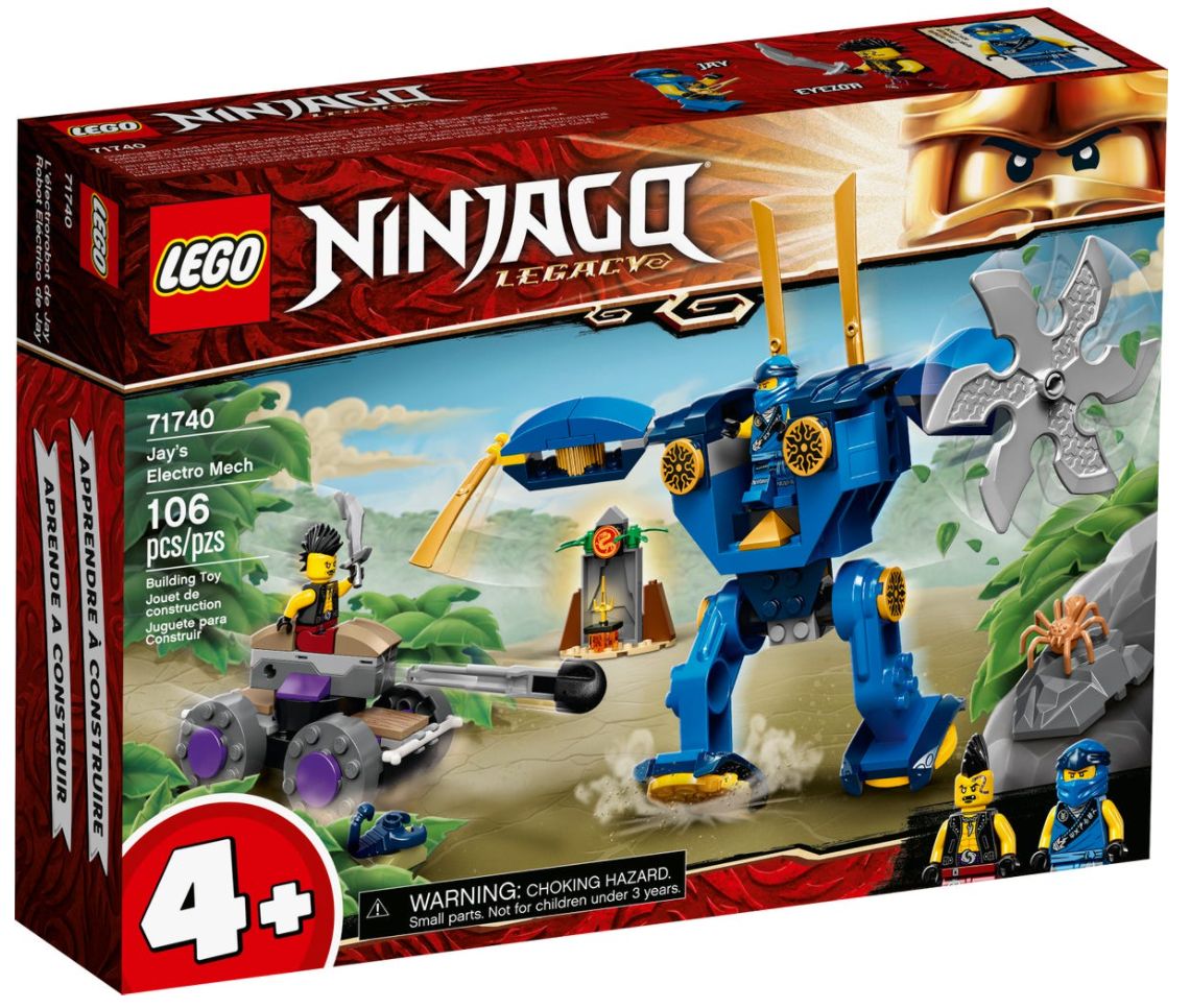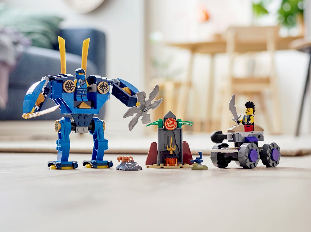 Podczas odgrywania scen z 4. sezonu serialu telewizyjnego LEGO® NINJAGO® za pomocą zestawu ElectroMech (71740) dzieci rozwiną swoje umiejętności konstrukcyjne. Zestaw zawiera ruchomego mecha, pojazd ninja, zabawkowego pająka i złoty miecz na stojaku — w sam raz na długie przygody w świecie ninja.