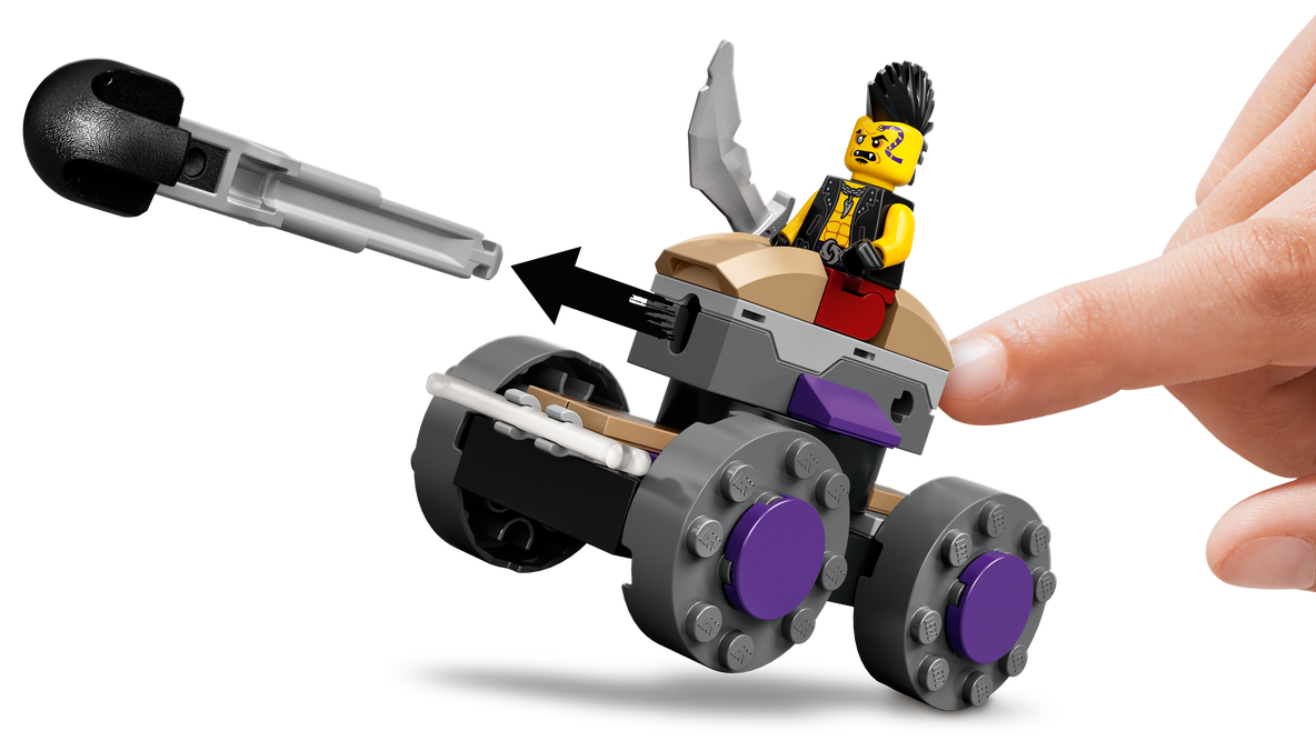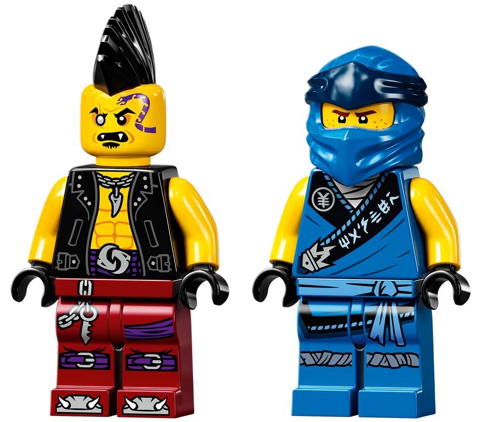 - Ta dynamiczna zabawka zawiera dwie minifigurki z czwartego sezonu serialu telewizyjnego NINJAGO®: wojownika ninja Jaya oraz złoczyńcę Eyezora. W zestawie także klocek startowy, który pozwoli dzieciom szybko zbudować model i brać się do zabawy.