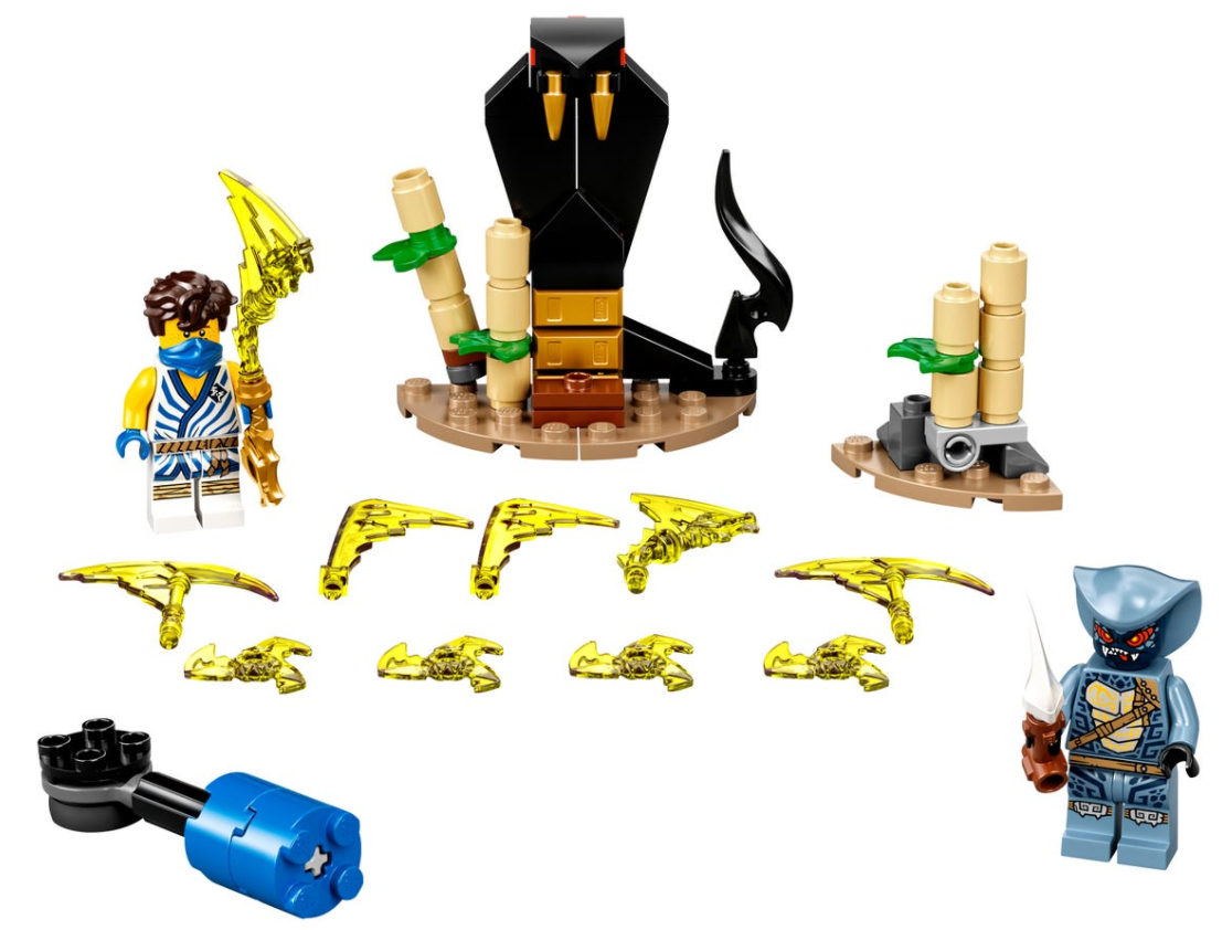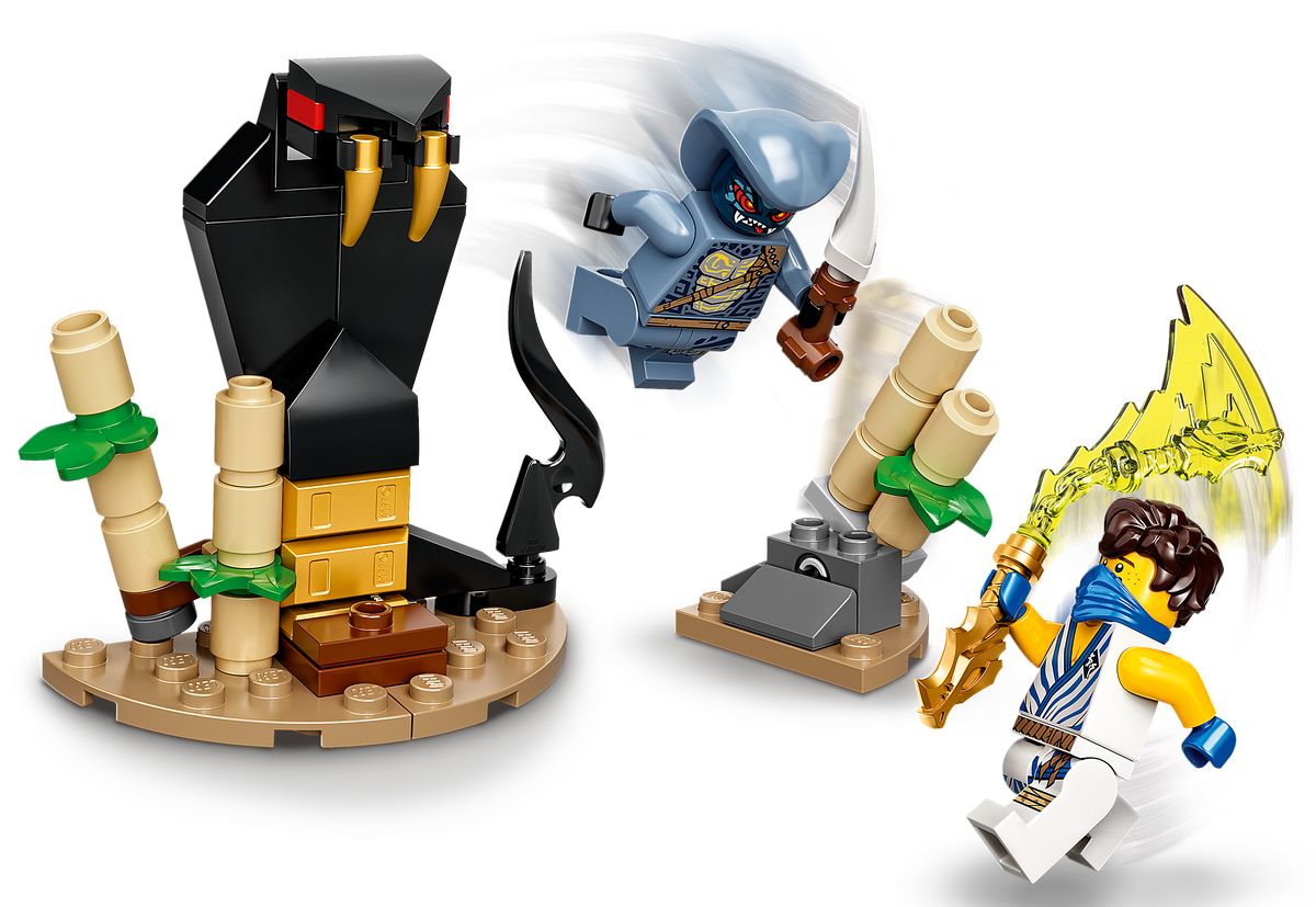 - Bojowy zestaw ninja zawiera również posąg węża do zbudowania z klocków i obrotową platformę bojową, którą Jay może wykorzystać do przewrócenia przeciwnika podczas zaciętych starć.