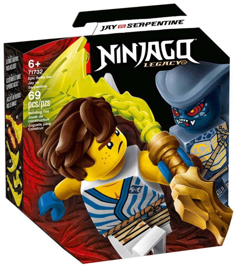 - Zestaw konstrukcyjny LEGO® NINJAGO® 71732 Epicki zestaw bojowy — Jay kontra Serpentine ma wszystko, czego dzieci potrzebują do odgrywania porywających starć z udziałem bohaterskiego Jaya i jego złego przeciwnika, jakim jest Serpentine.