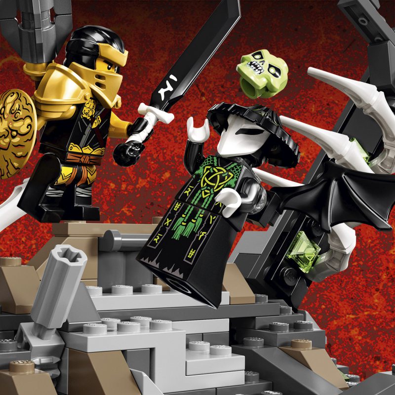 - Ten fantastyczny zestaw to jednocześnie zabawka, która pozwala inscenizować walki znane z serialu NINJAGO®, i gra planszowa LEGO®, która pozwala dzieciom ruszyć trasą pełną pułapek i innych niebezpieczeństw, by na końcu zmierzyć się ze Szkieletowym Czarownikiem.