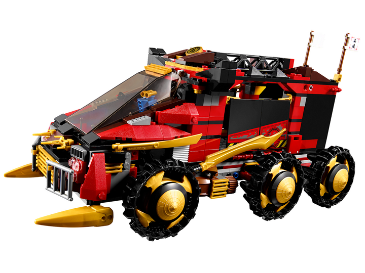 Pythor i Anacondrai powrócili do NINJAGO™, dlatego drużyna Ninja nie ma wyjścia i musi wkroczyć do akcji z Ninja DB X, aby stawić czoła najgroźniejszemu wrogowi! Poprowadź potężny, 6-kołowy pojazd przez dżunglę i wkrocz do bitwy u bram Anacondrai. Gdy odłączysz centrum dowodzenia, zobaczysz ukryte podwójne działko sprężynowe. Otwierana sterownia ułatwia zabawę. Przygotuj plany bitwy, używając najnowocześniejszej techniki i wybierz ze stojaka narzędzia oraz broń. Posadź Nyę za sterami pojazdu i wystrzel go z wieży wartowniczej, by ostrzelać wroga z działek. Włącz się do walki z Kaiem na jego supermotocyklu. Twoim zadaniem jest pokonać wojowników Anacondrai i uciec z wyspy!